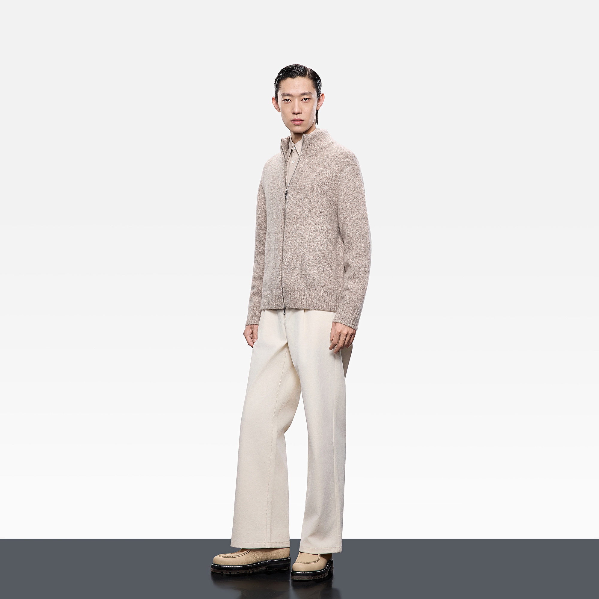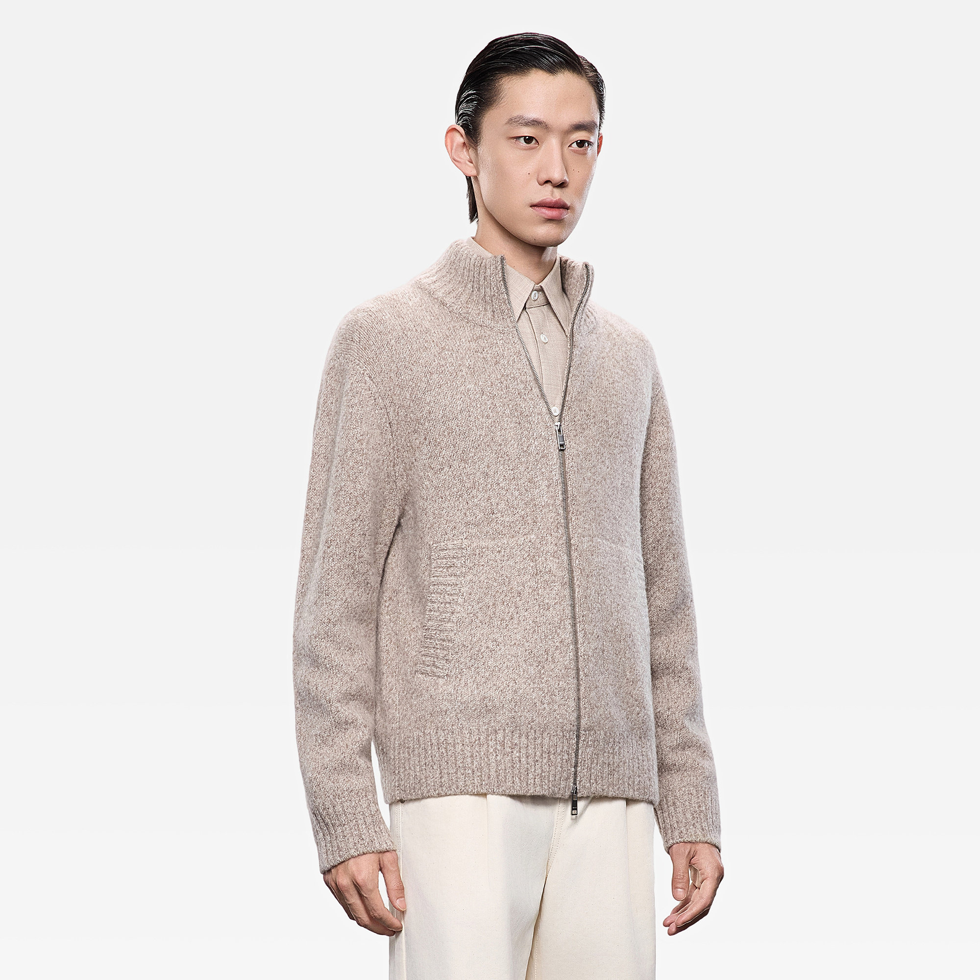 ERDOS 男装半高领羊绒开衫25年秋冬新品厚款保暖时尚拉链针织衫