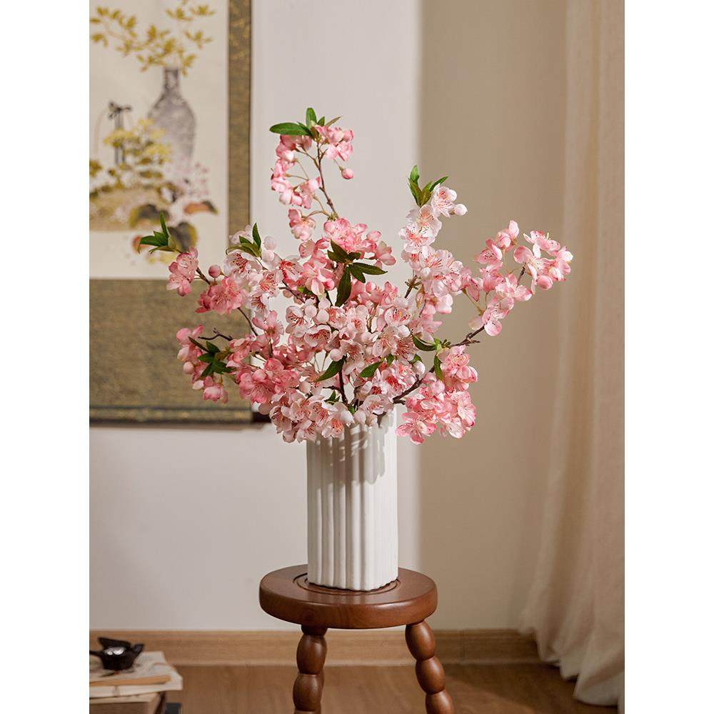 桃花仿真花粉色假花摆设客厅装饰干花摆件插花高级仿生花餐桌花艺