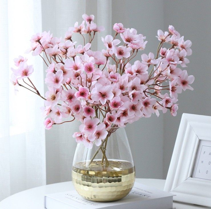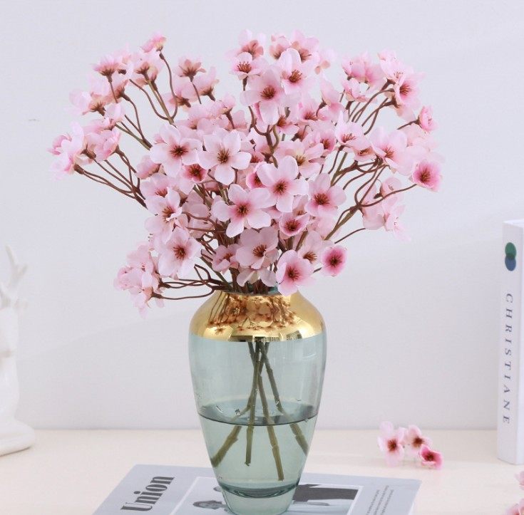 仿真桃花枝假花花朵摄影拍照道具家居客厅桌面摆件花艺装饰饰品