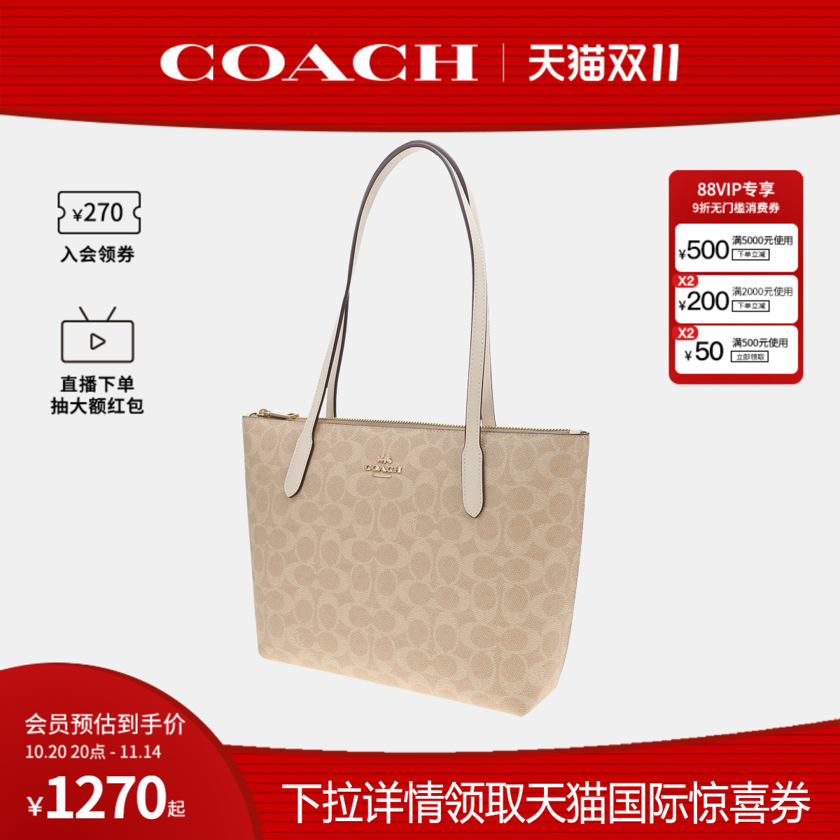 COACH/蔻驰官方 女包中号老花PVC大容量单肩手提包托特包CBT18