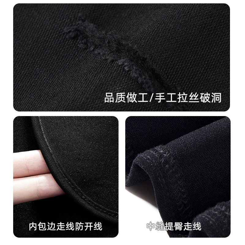 黑色2023新款破洞薄款九分小黑裤