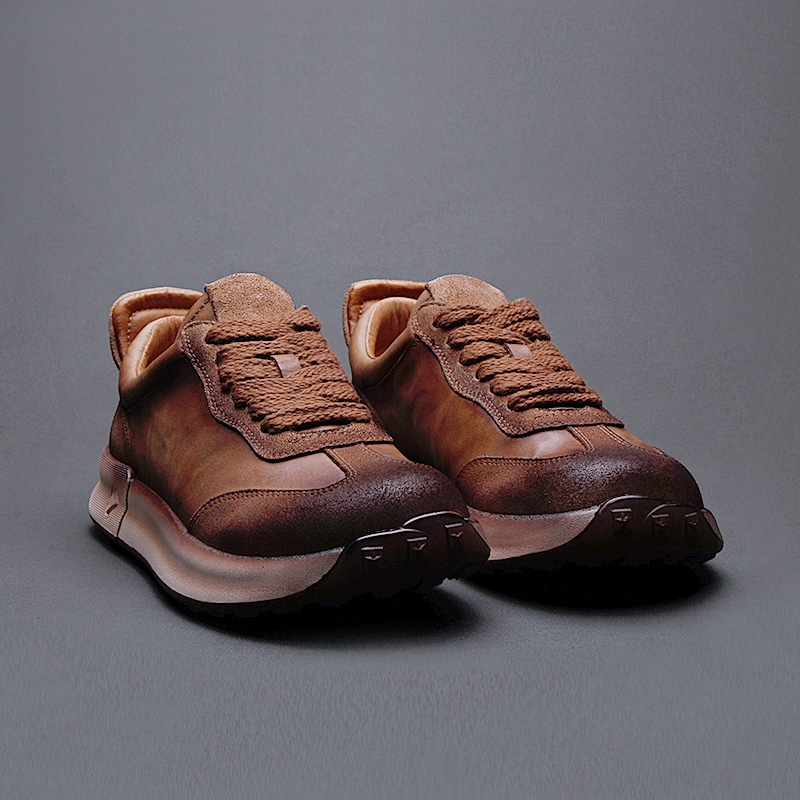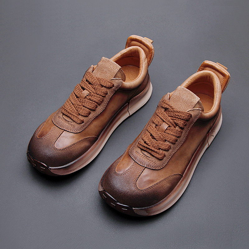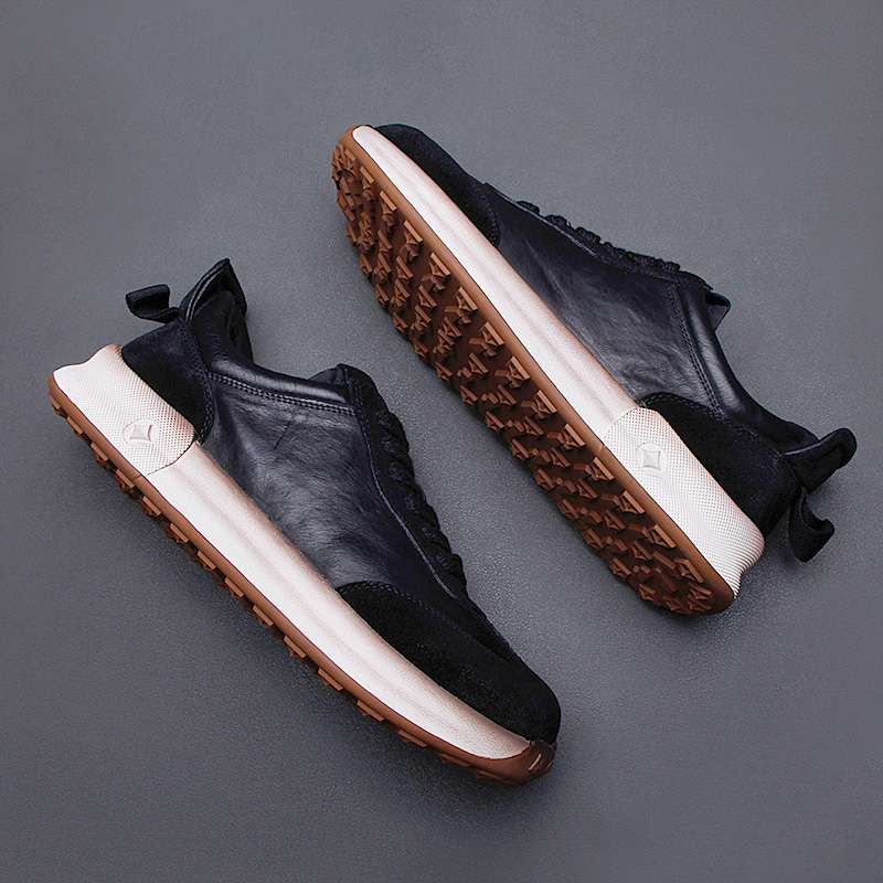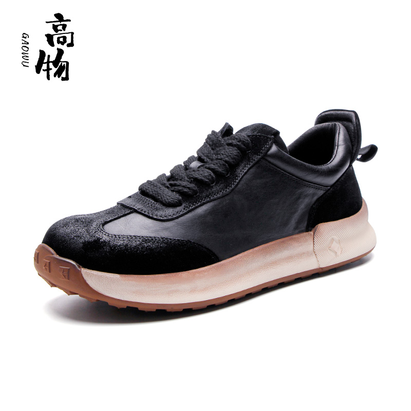 欧洲站潮牌小众复古做旧牛皮鞋子男休闲德训跑鞋超轻软底运动男鞋
