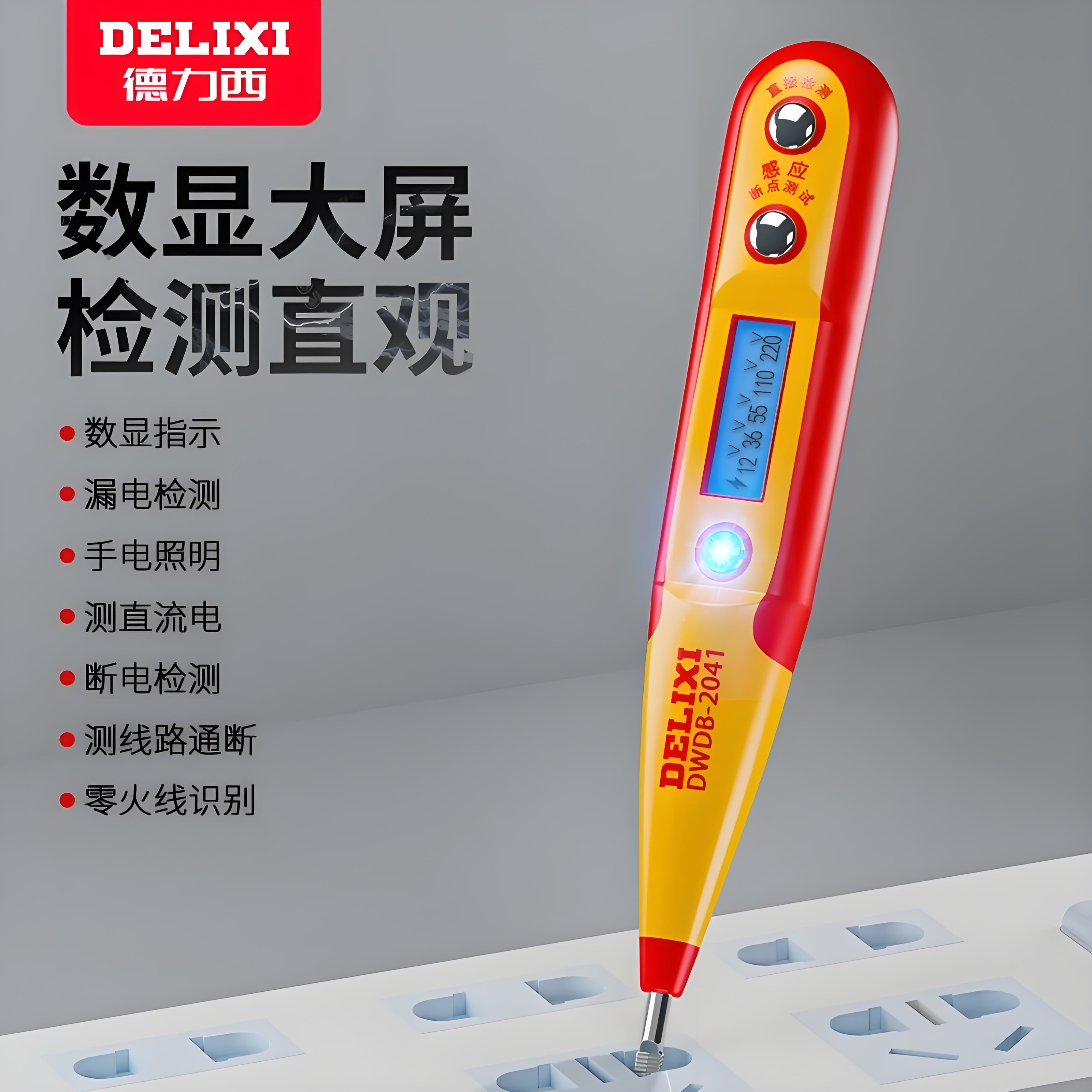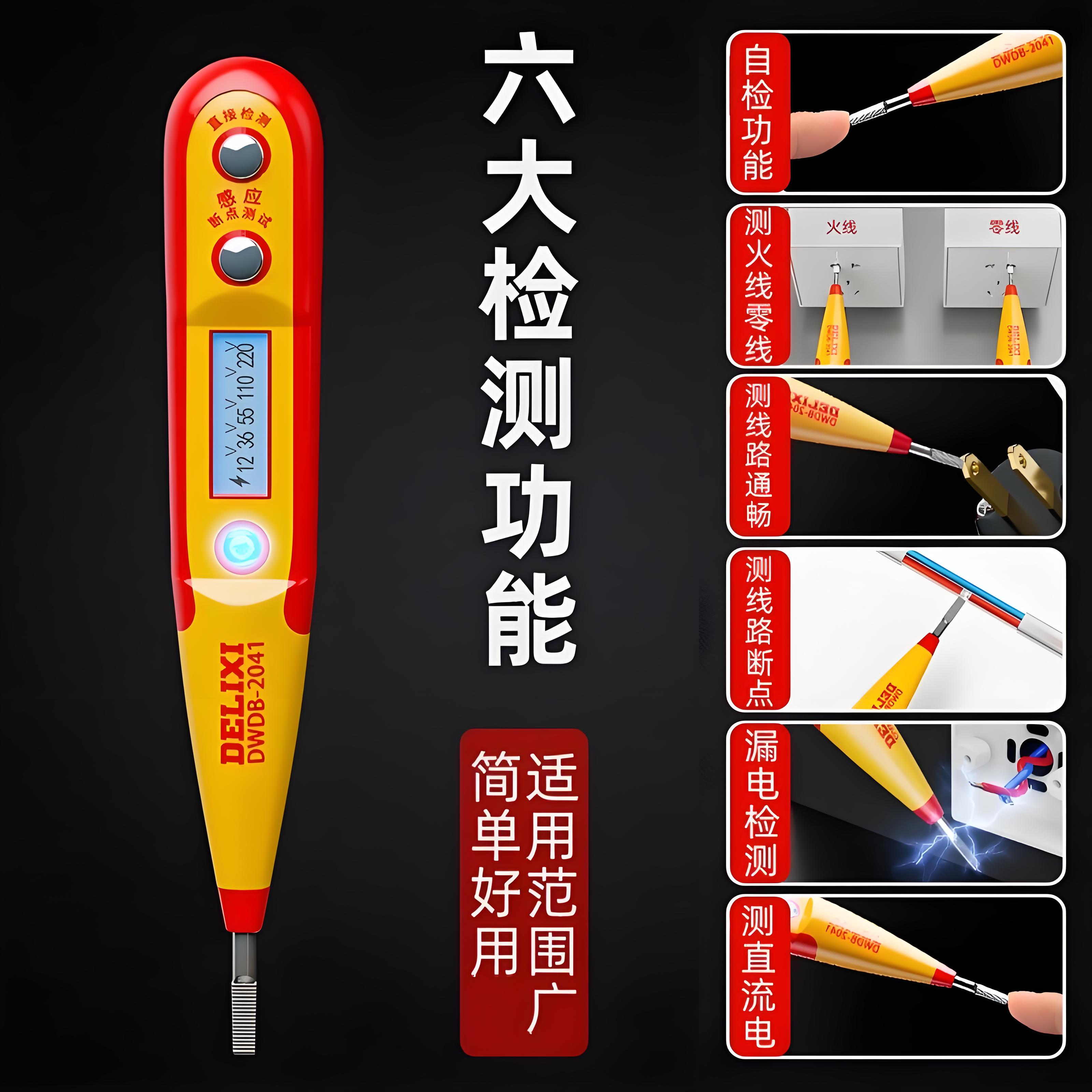 德力西测电笔电工专用测断线漏电数显字智能感应验断点多功能家用