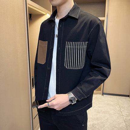 痞帅拼色夹克外套潮牌男士高级感休闲衬衫百搭帅气早春季男装2024