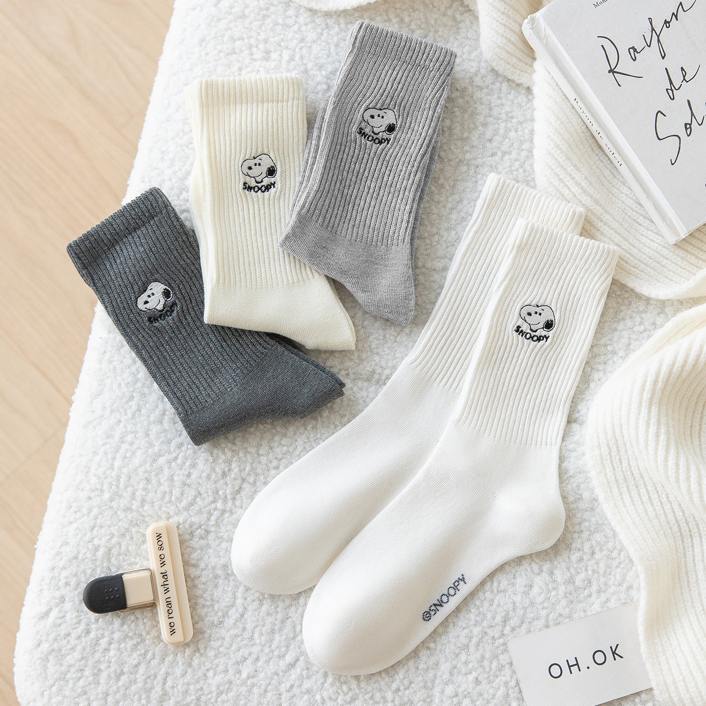 卡拉美拉史努比联名袜子女2025新款爆款中筒袜白色女士秋冬棉袜