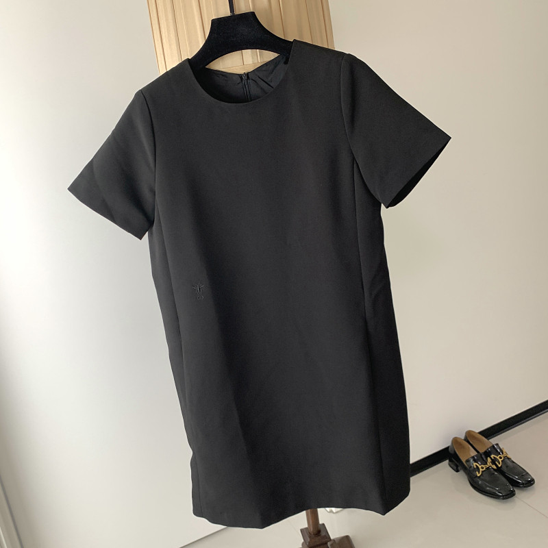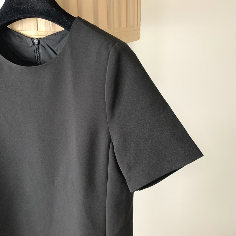 【断码特价】轻奢极简气质直筒裙圆领短袖宽松连衣裙女