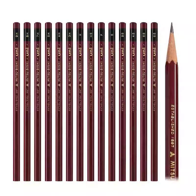 日本三菱UNI1887红杆铅笔石墨铅笔绘画素描绘图2b考试涂卡测试