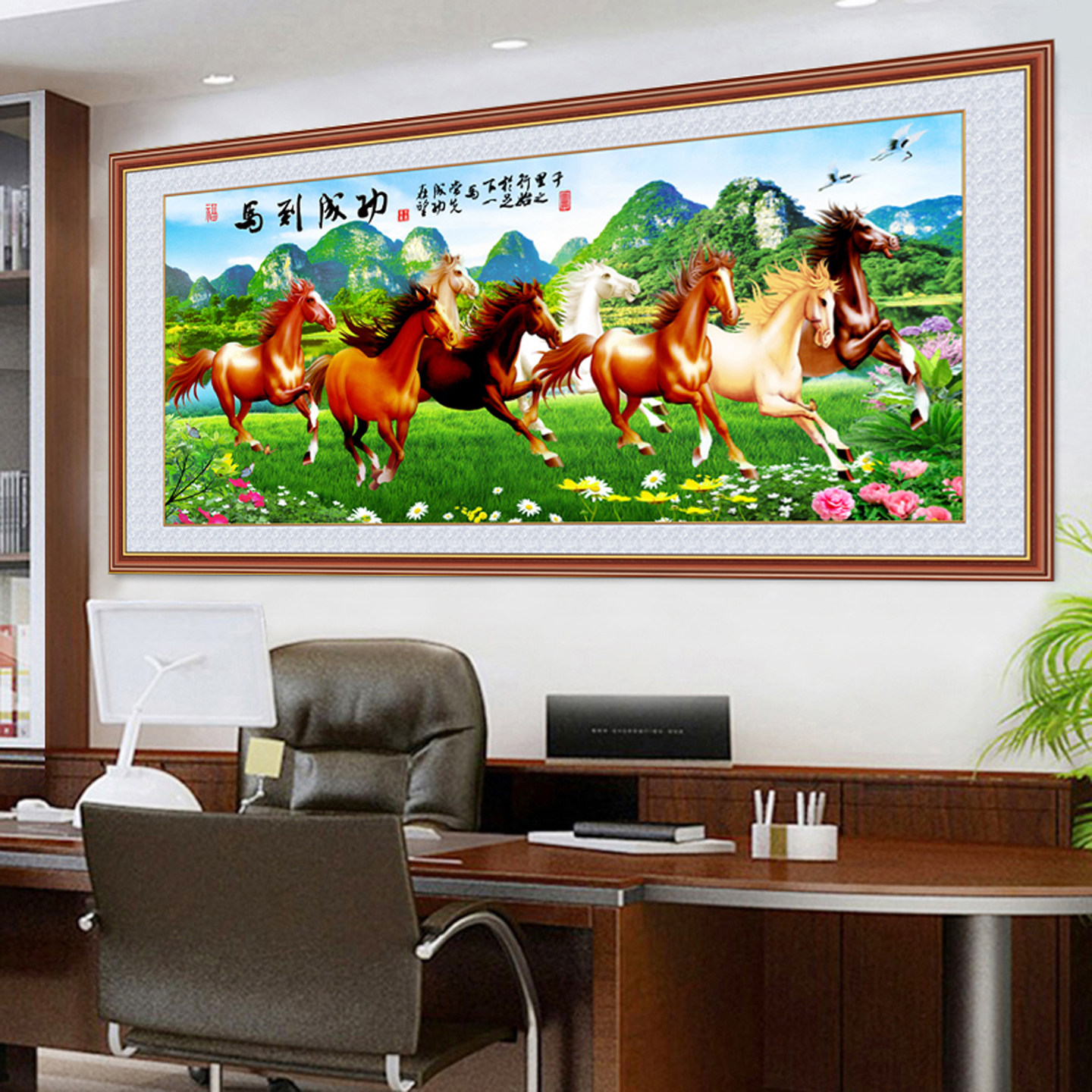 墙纸自粘八骏马图墙贴马到成功贴画客厅装饰画挂画背景墙壁纸壁画
