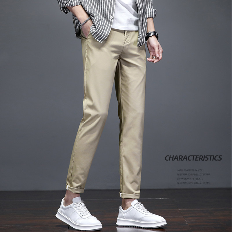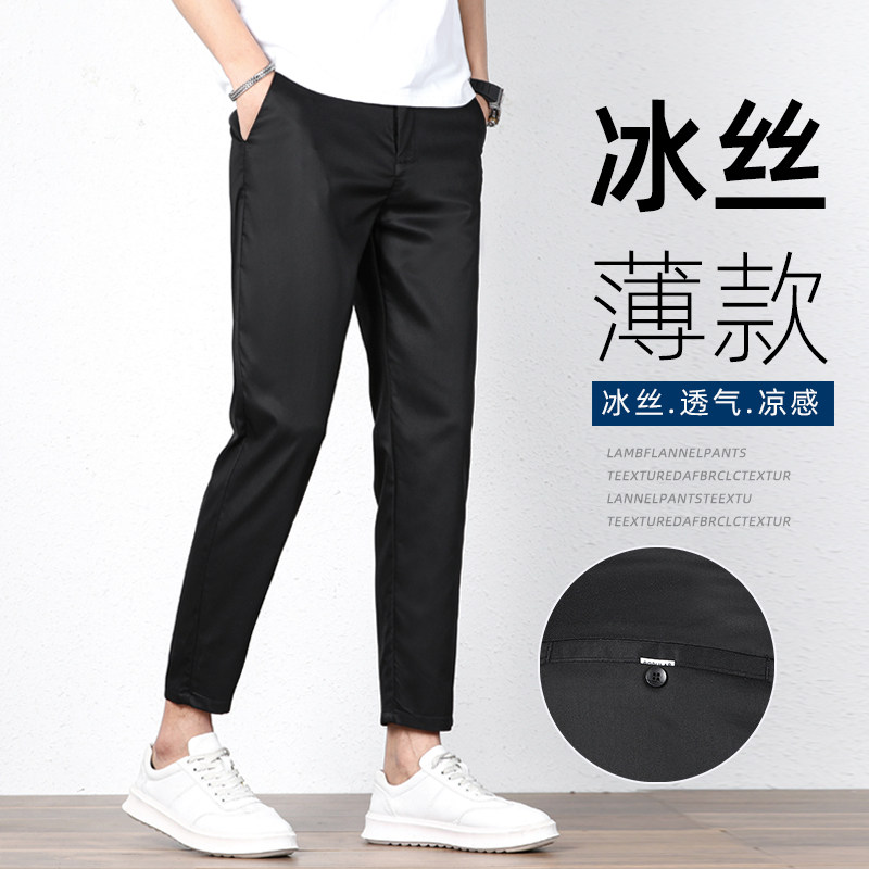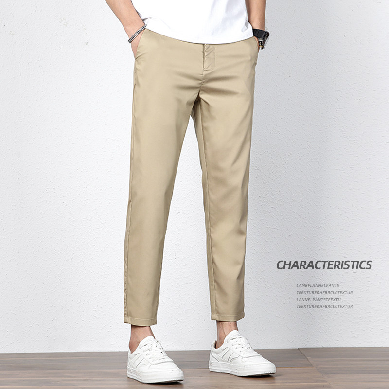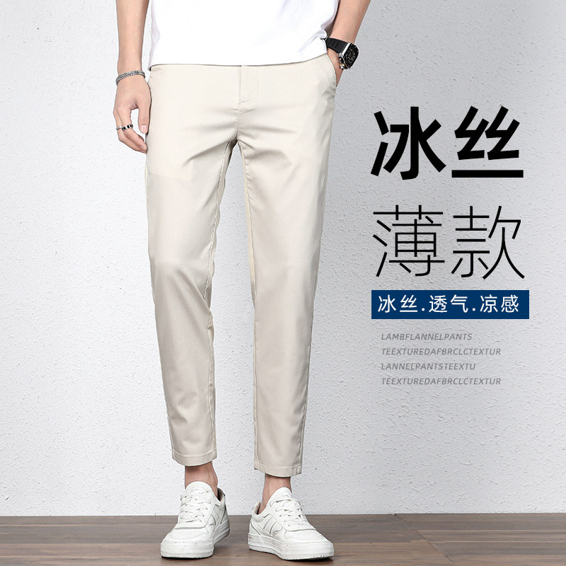 男夏季薄款米白色休闲裤男款夏天男士九分裤子男生直筒修身 9分裤