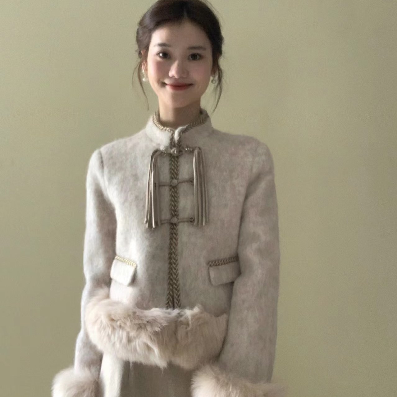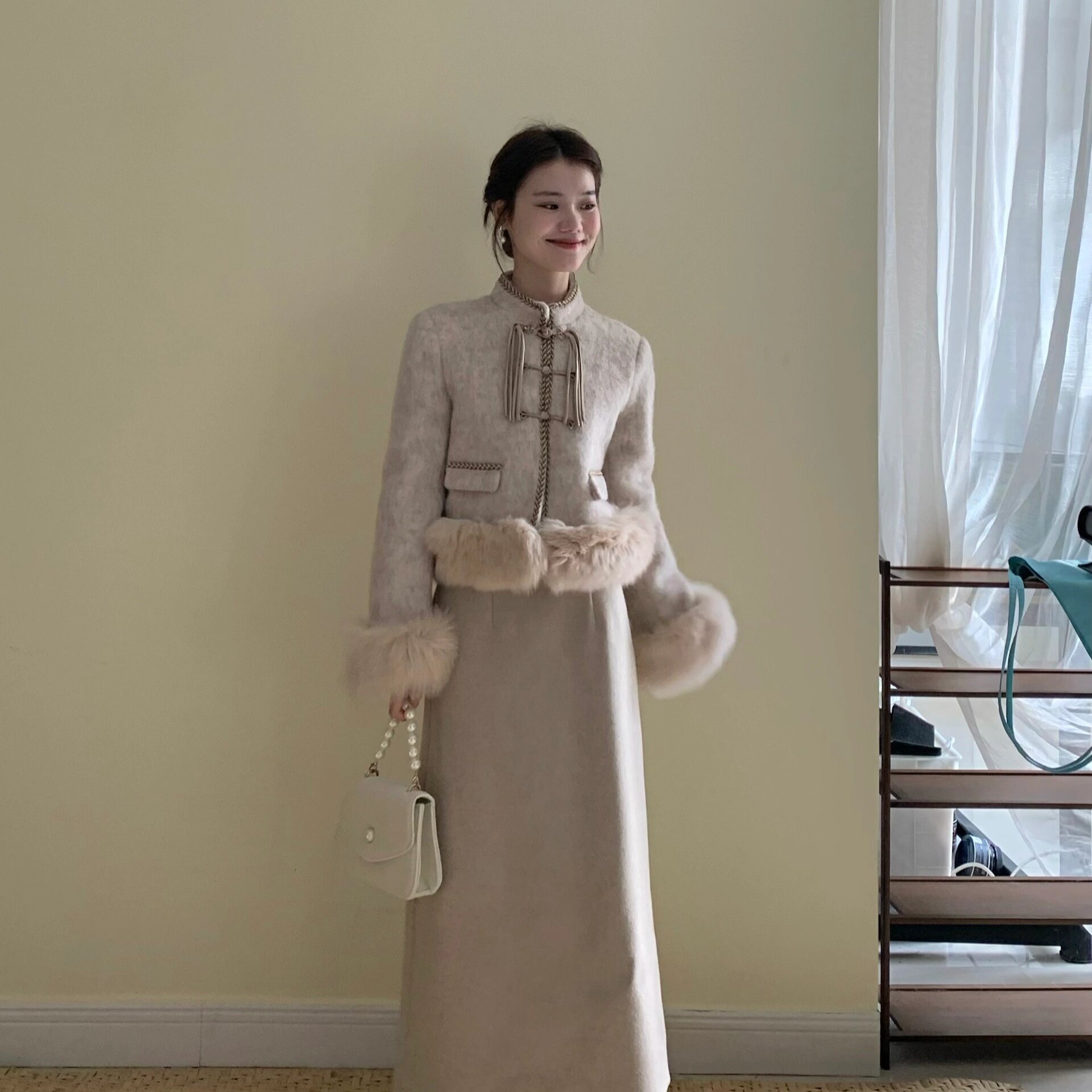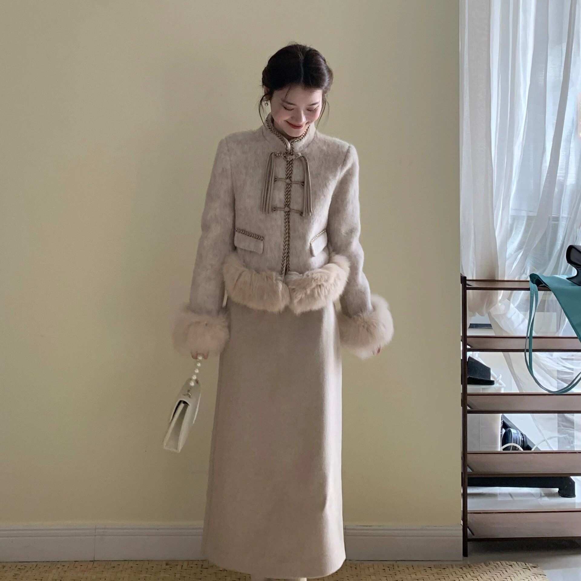 新中式夹棉套装裙女秋冬季2025富家千金高级感气质名媛毛呢两件套