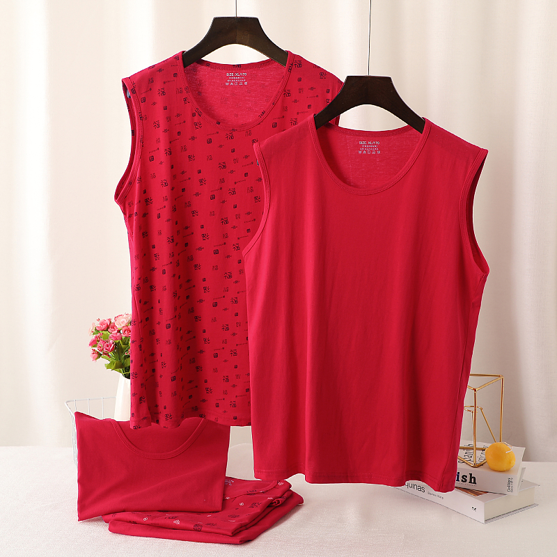 中老年人背心大红色内衣内裤本命年女纯棉妈妈打底汗衫老太太蛇年