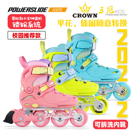 Powerslide宝狮莱王冠儿童初学休闲溜冰鞋专业培训平花调节轮滑鞋