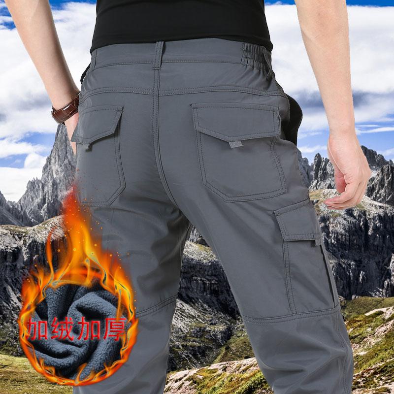 男裤户外防风防水速干裤男宽松直筒工装裤男款冬季加绒加厚冲锋裤