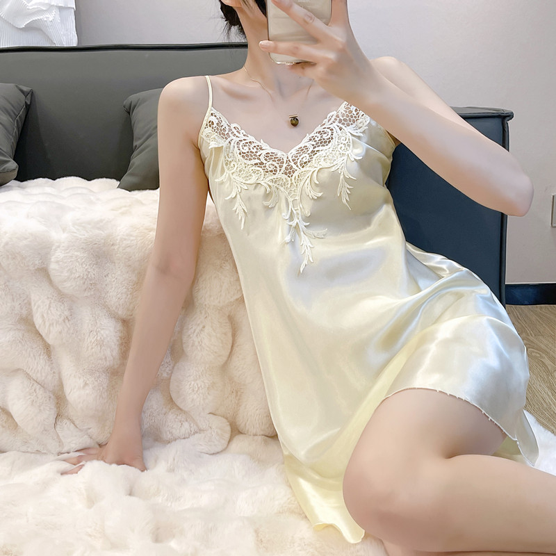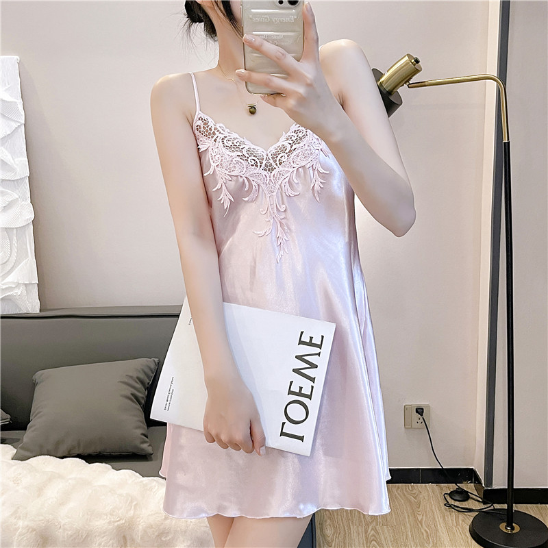 睡衣女士夏季薄款冰丝蕾丝睡裙