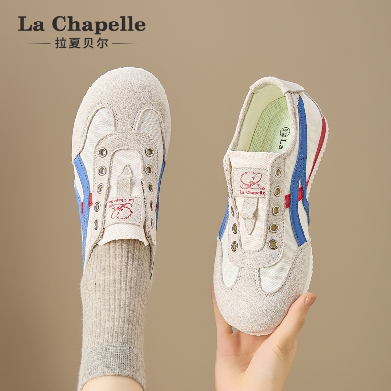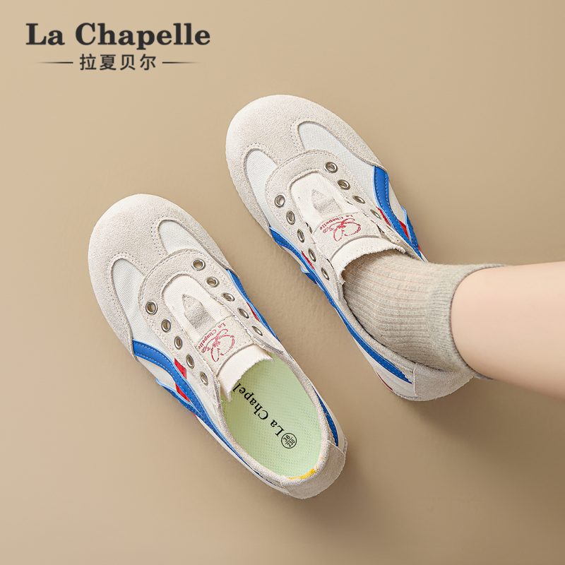 拉夏贝尔平底德训鞋女2025新款秋季透气薄款板鞋一脚蹬懒人阿甘鞋