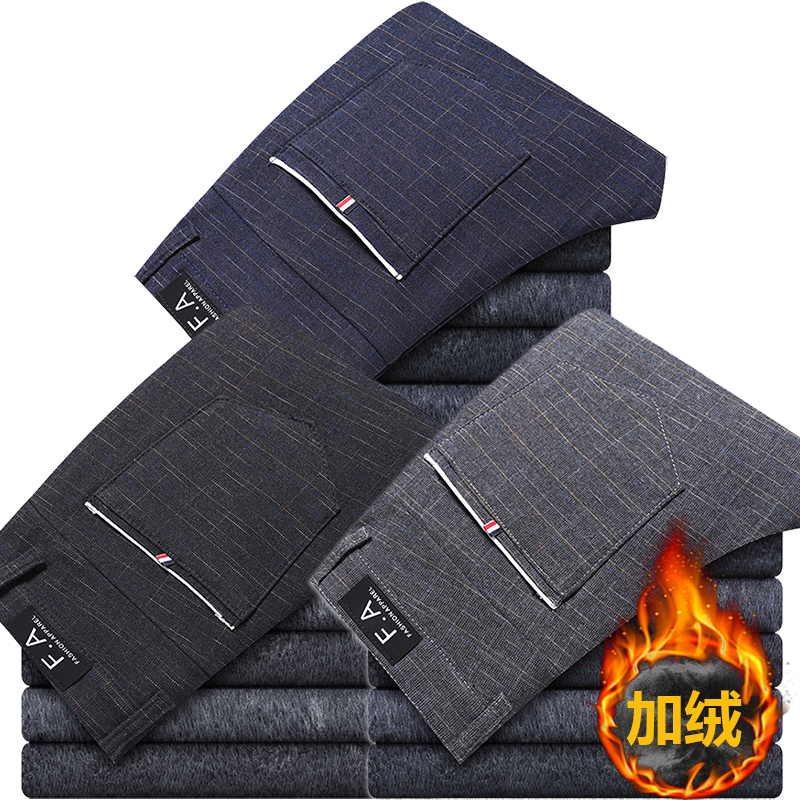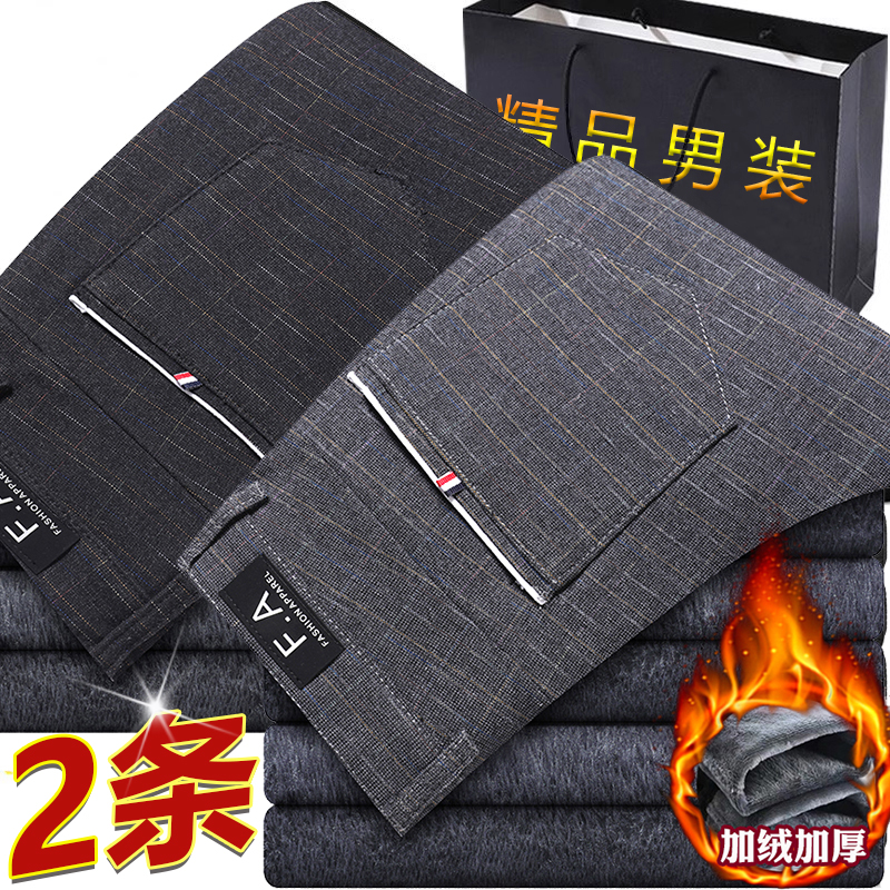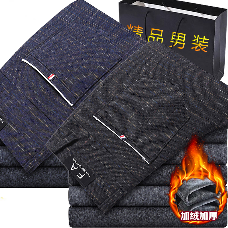 冬季厚款男士休闲裤男款2025新款爆款修身加绒休闲裤春秋季长裤子