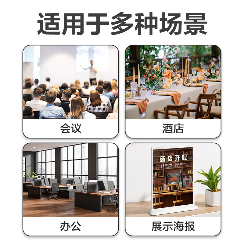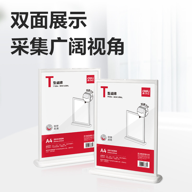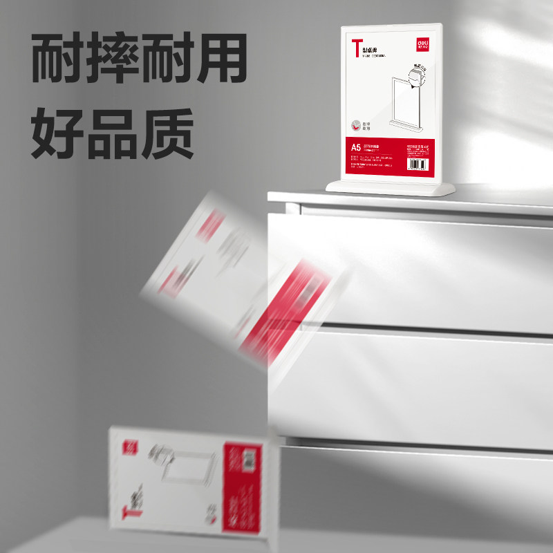 得力亚克力台卡桌牌双面透明立牌a4抽拉强磁台签展示牌A5桌卡个性创意餐牌水晶菜单广告价目表T型展示架