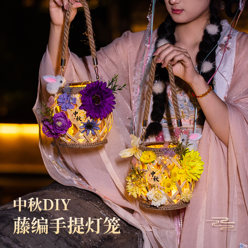 古风竹编灯笼中秋节2025新款儿童手提兔子花灯手工制作diy材料包