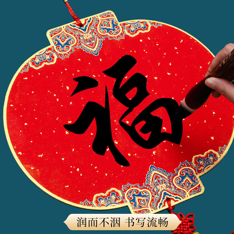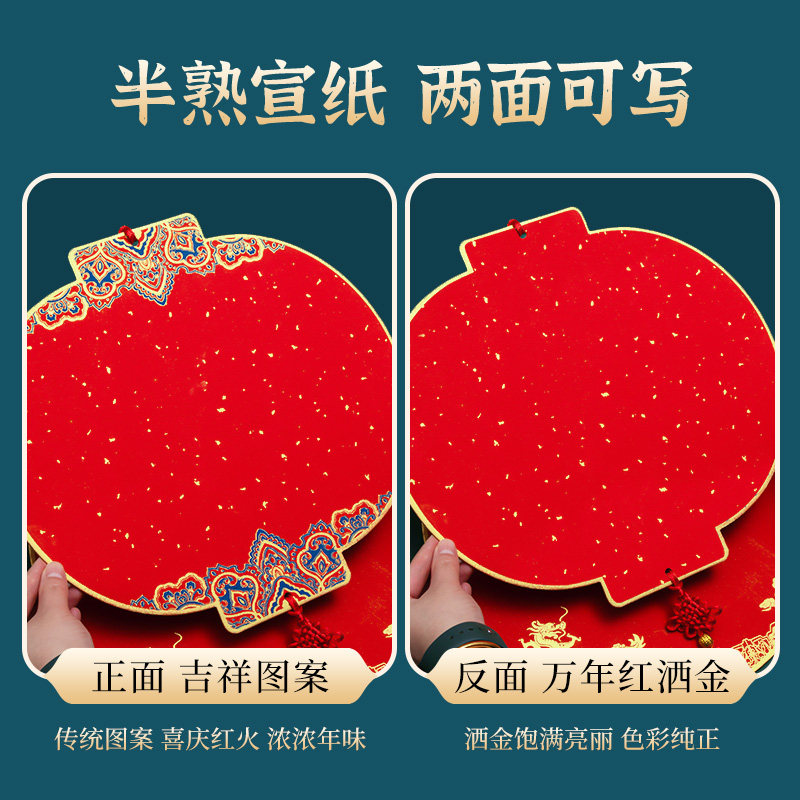 万年红宣纸福卡新春挂件蜡染洒金双面空白手写福字斗方书法作品纸圆形加厚半生熟宫灯灯笼免装裱硬卡卡纸挂饰