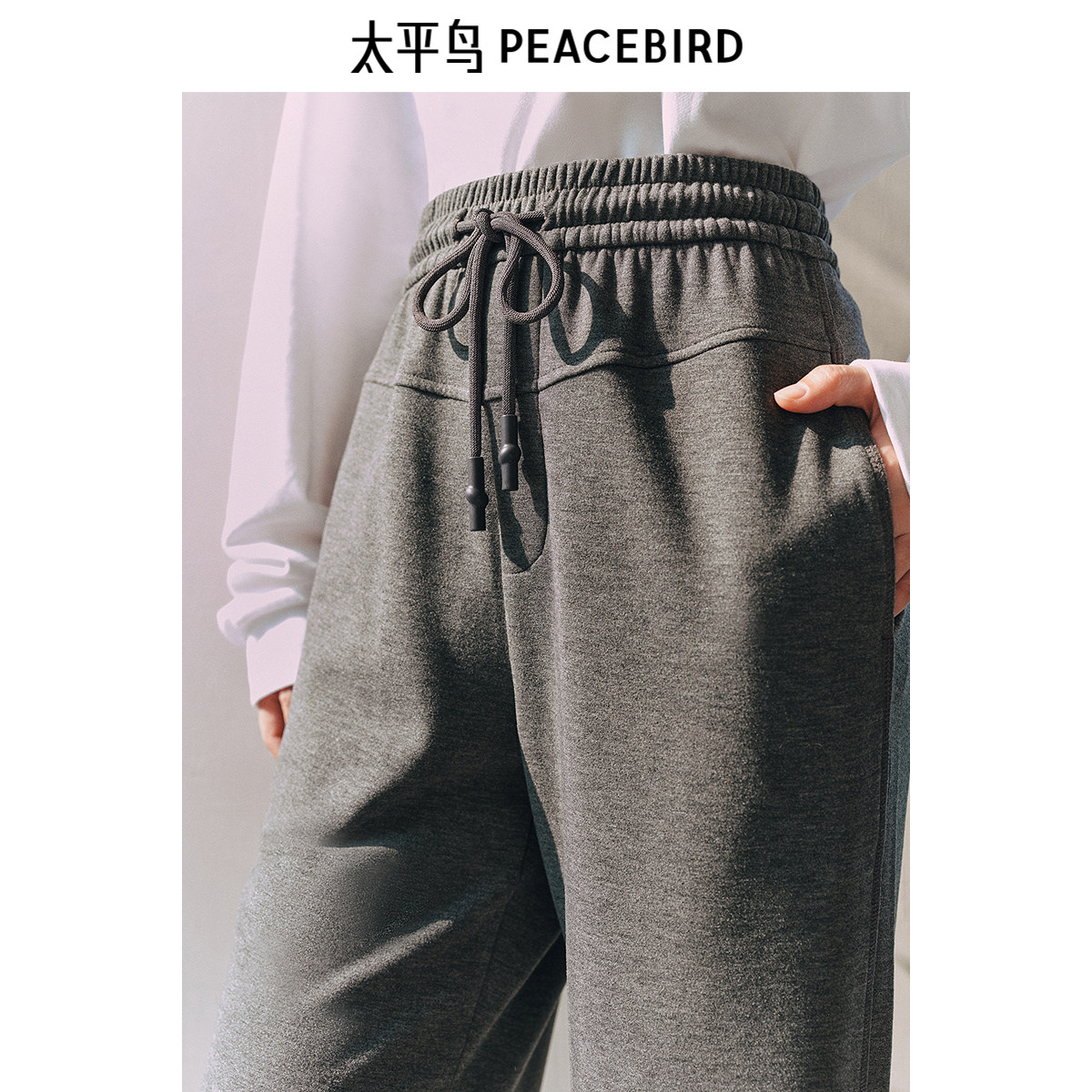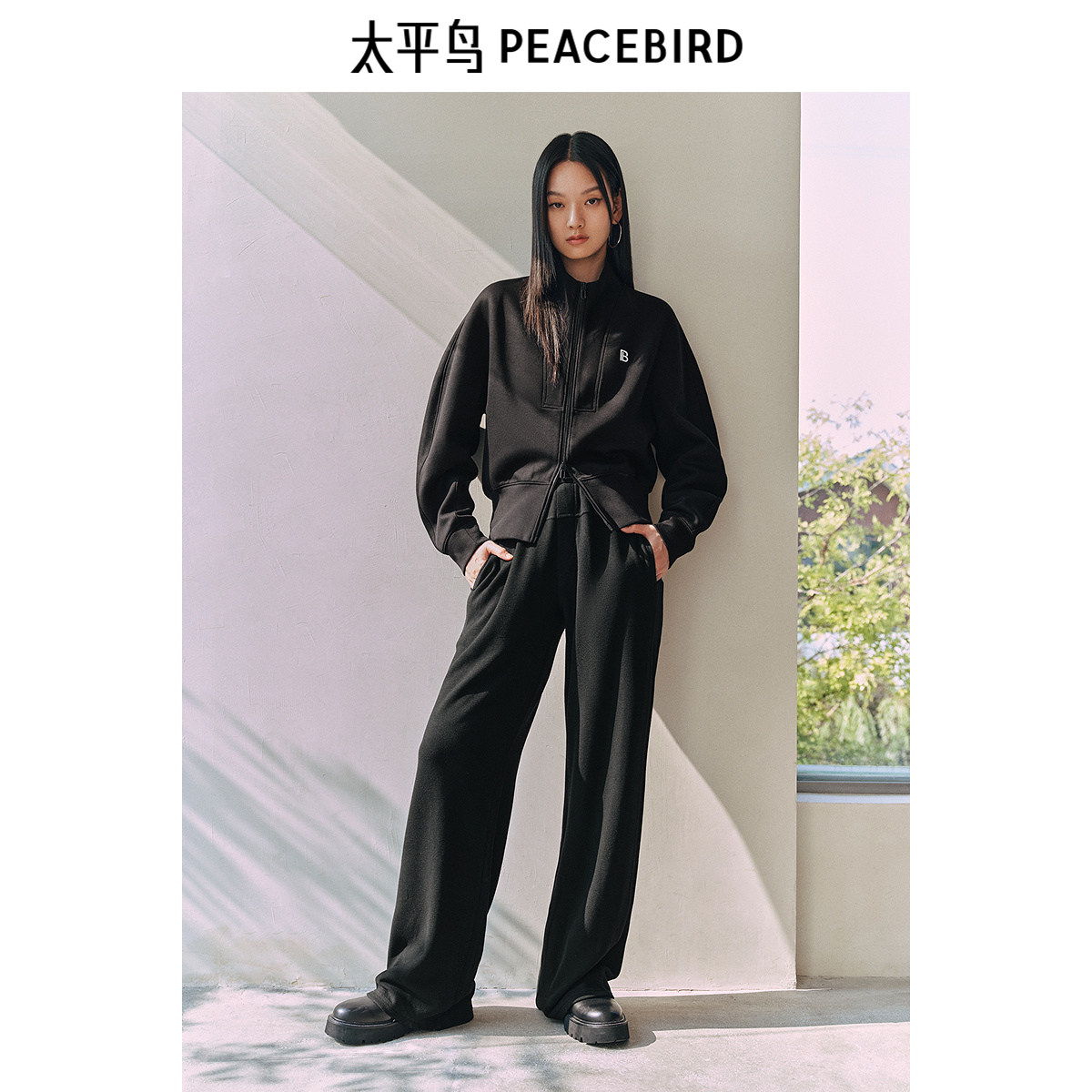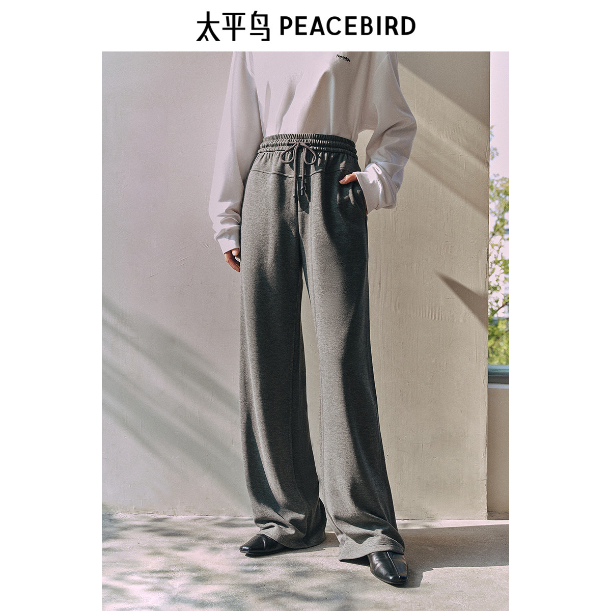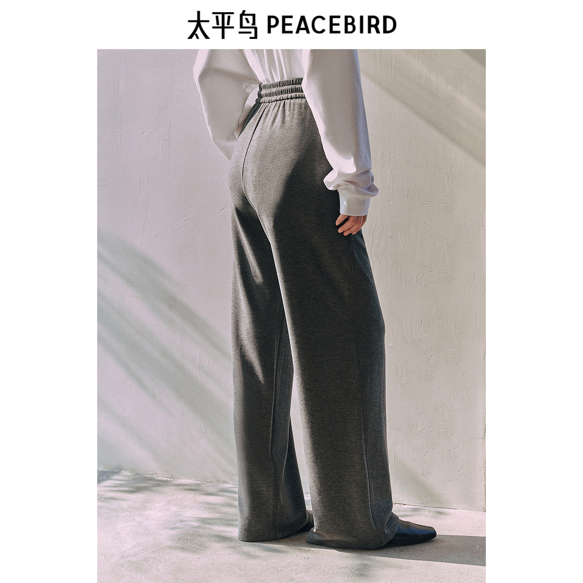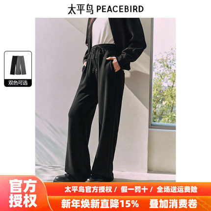 太平鸟高腰休闲针织长裤2025年冬季新款黑色加厚宽松直筒阔腿裤女