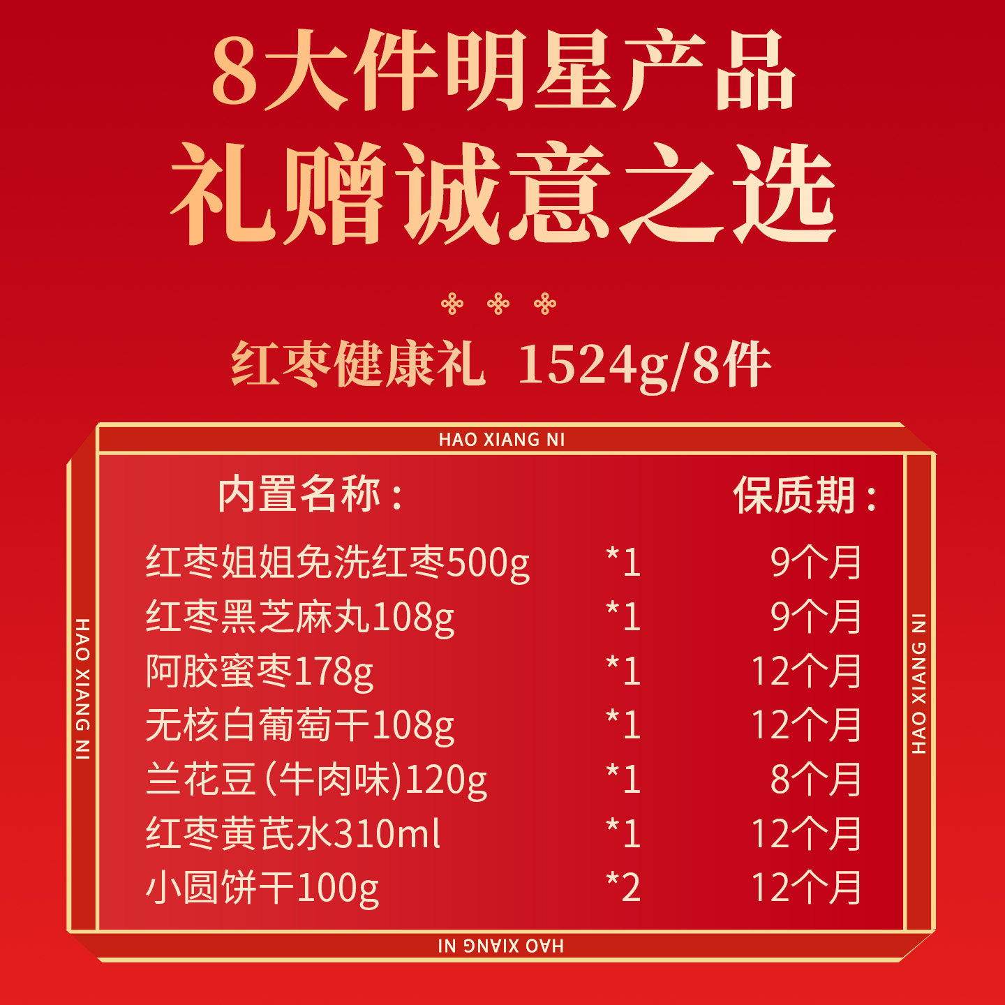 好想你红枣坚果礼盒夹核桃健康零食大礼包枣仁派过年货送礼盒团购