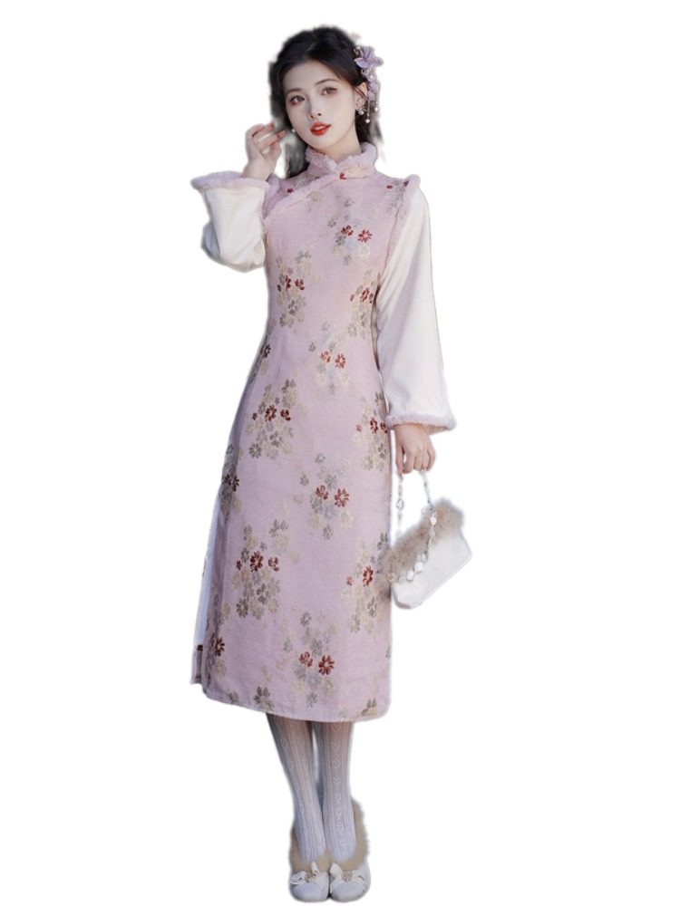 冬季旗袍冬款中式国风冬装女中国风女装2024新款秋冬新中式连衣裙