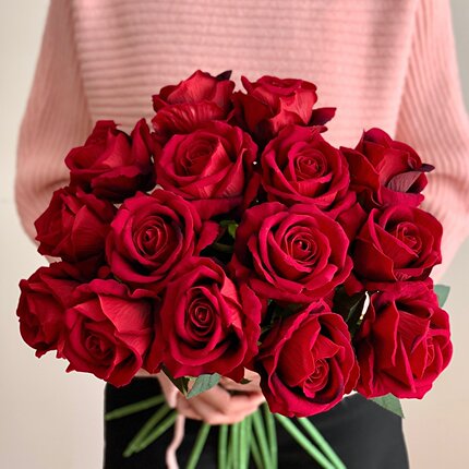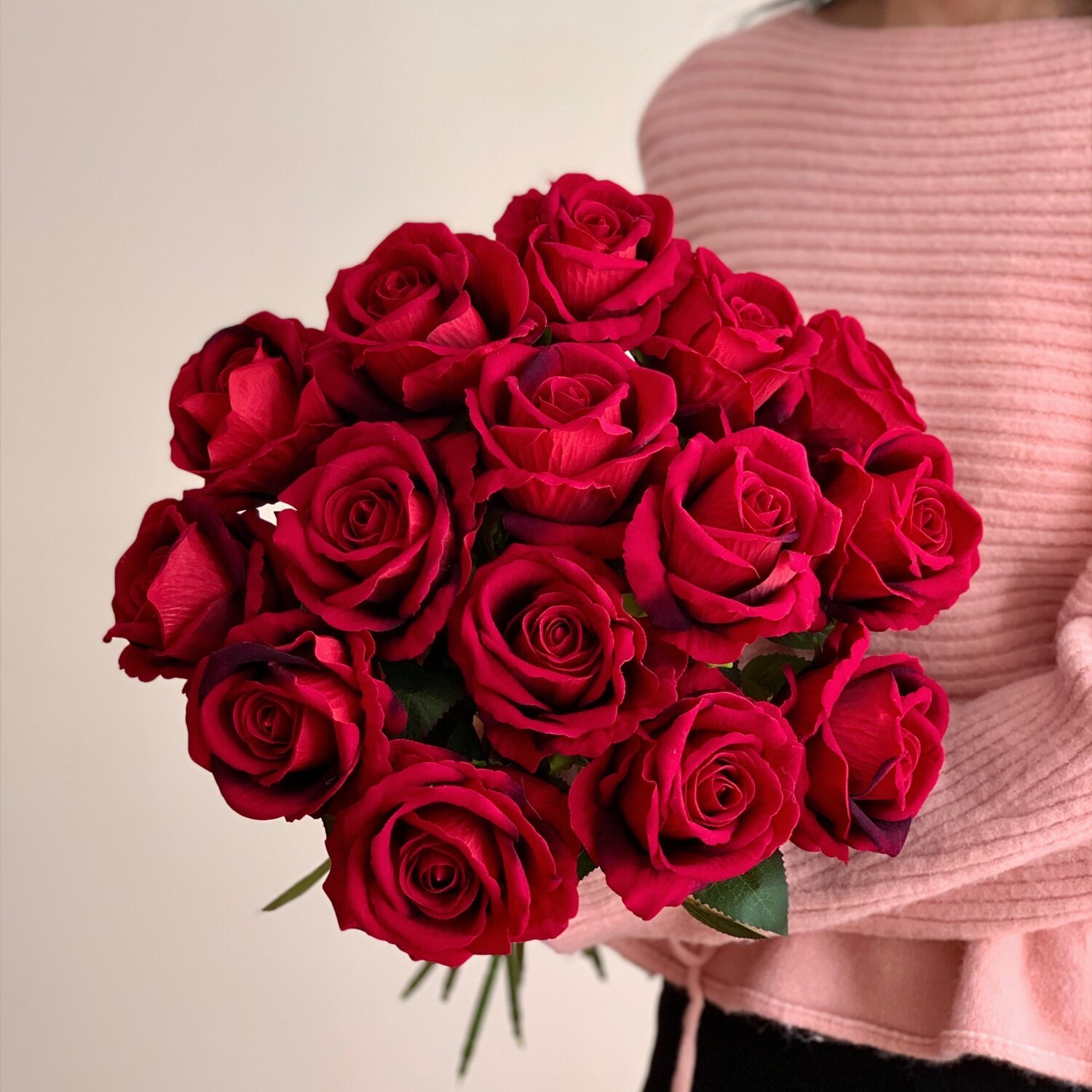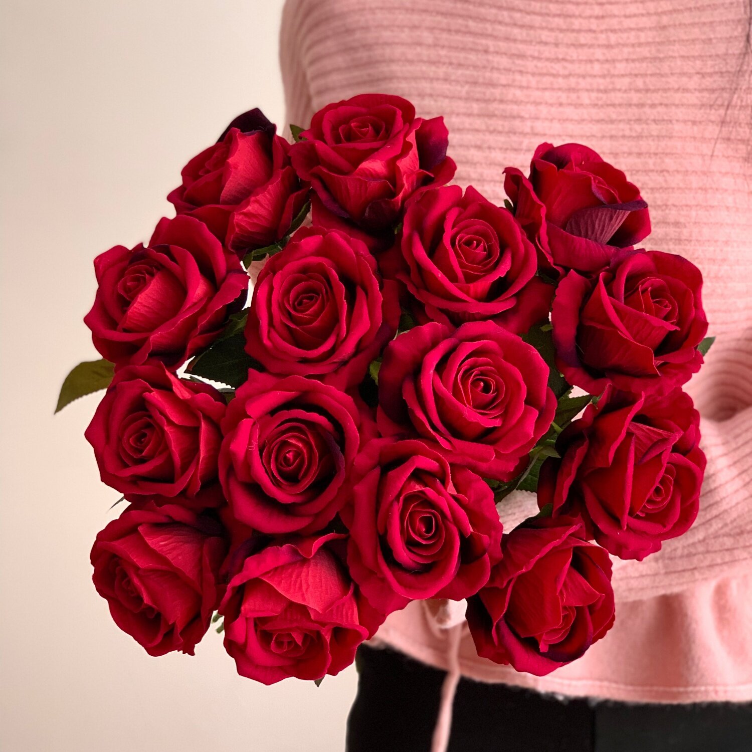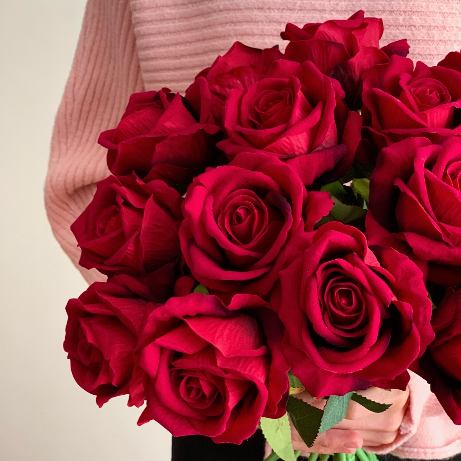 高级感酒红色仿真玫瑰花情人节礼物手捧花花束家居摆件假花餐桌花