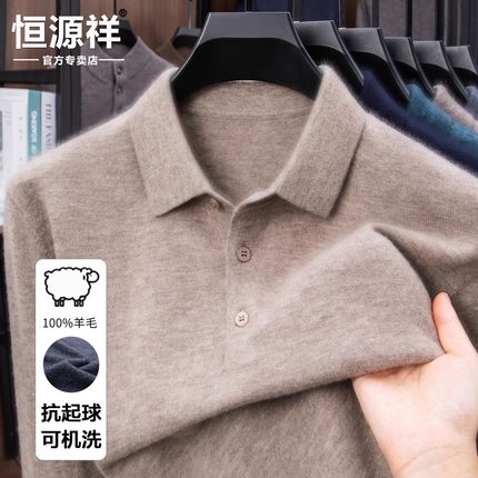 恒源祥秋冬翻领100%纯羊毛衫毛衣