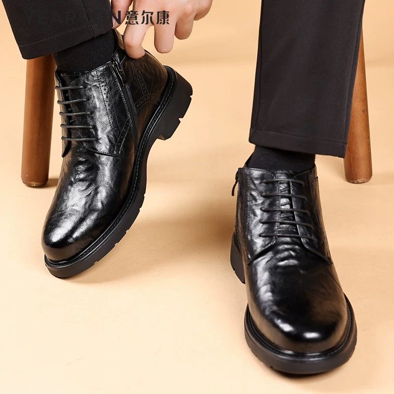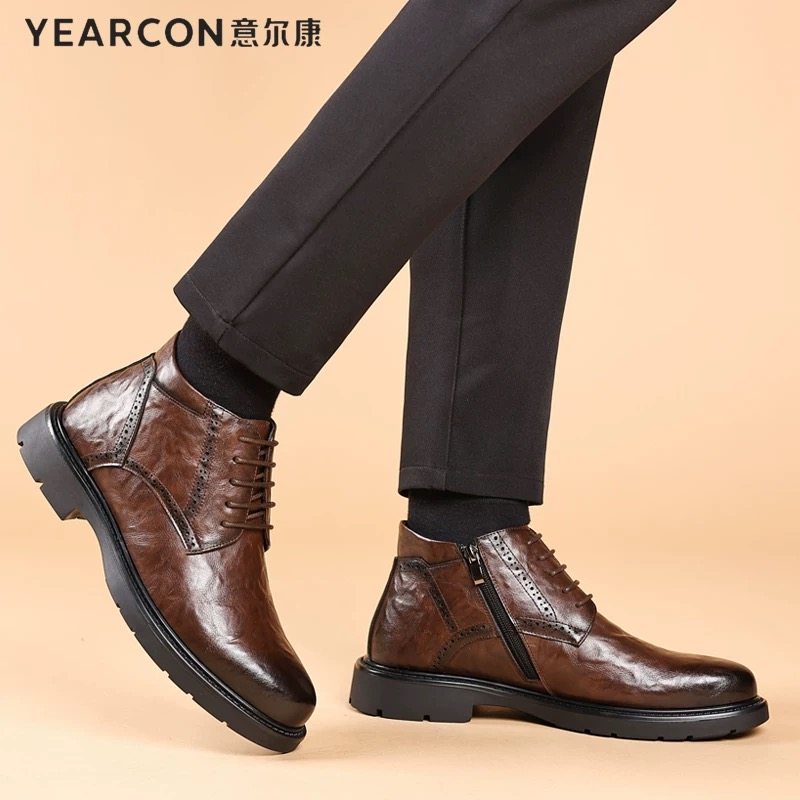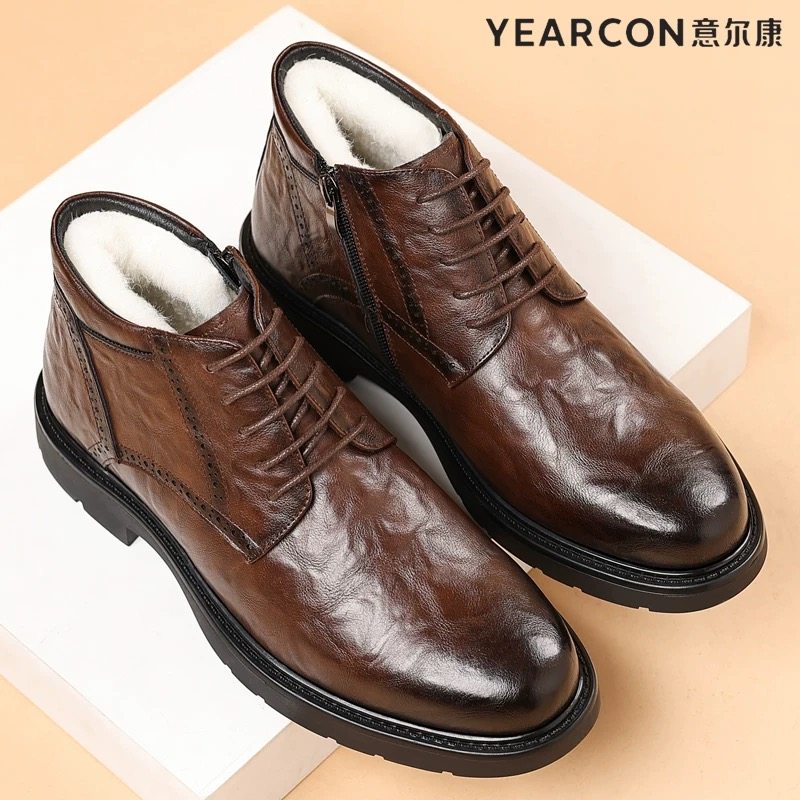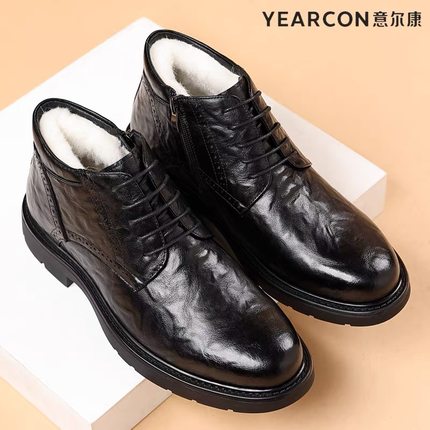 意尔康男士皮鞋2025冬季新款全牛皮精品高端加绒保暖软底高帮棉鞋