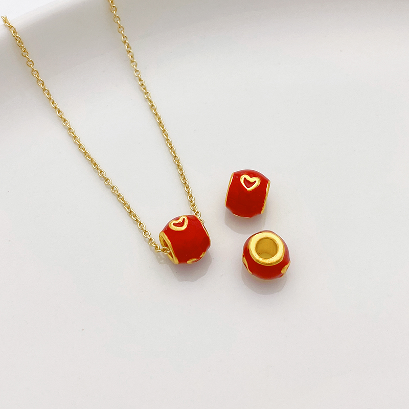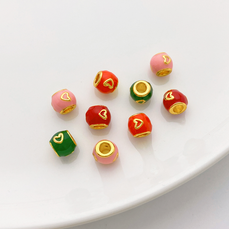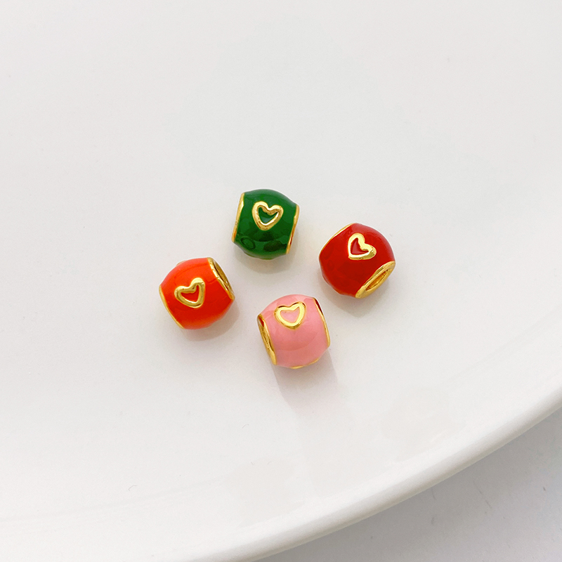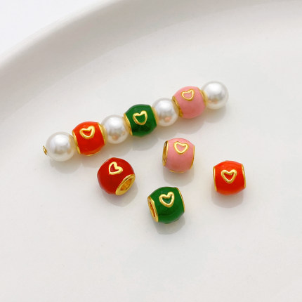 18K包金保色珐琅爱心隔珠转运珠手工diy编织手绳材料手链项链配件
