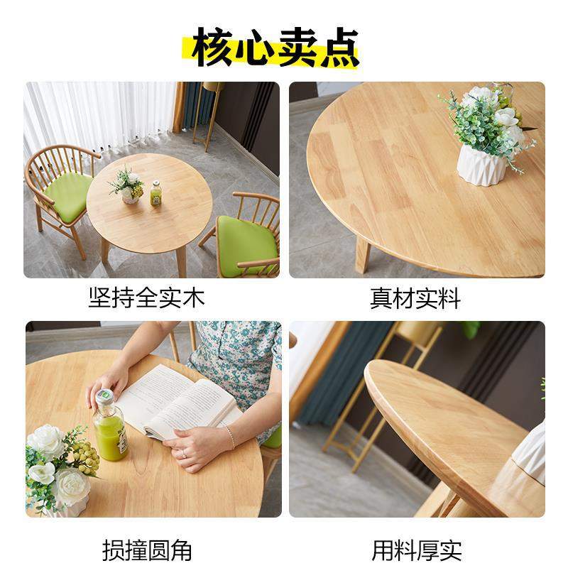 全实木小圆桌小户型简约圆形餐桌休闲接待洽谈桌子阳台茶桌椅组合