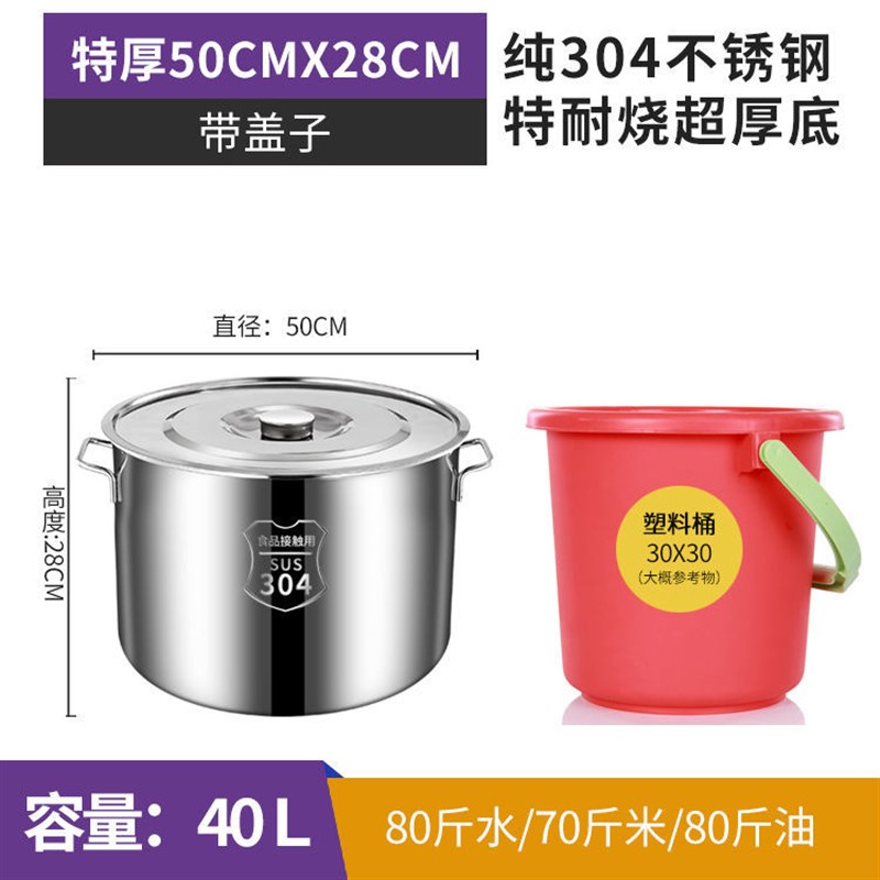 商用30a4不锈钢锅带盖汤锅汤桶加厚家用油桶大容量锅不锈钢储水桶