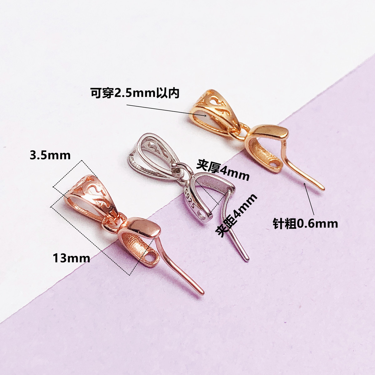 s925纯银瓜子扣玉坠夹扣 diy玉石扣头翡翠黄金色银扣子吊坠扣包邮