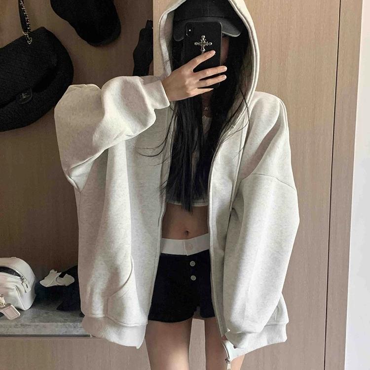 黑色连帽卫衣女2025新款春秋薄款宽松慵懒风纯棉外套美式开衫上衣