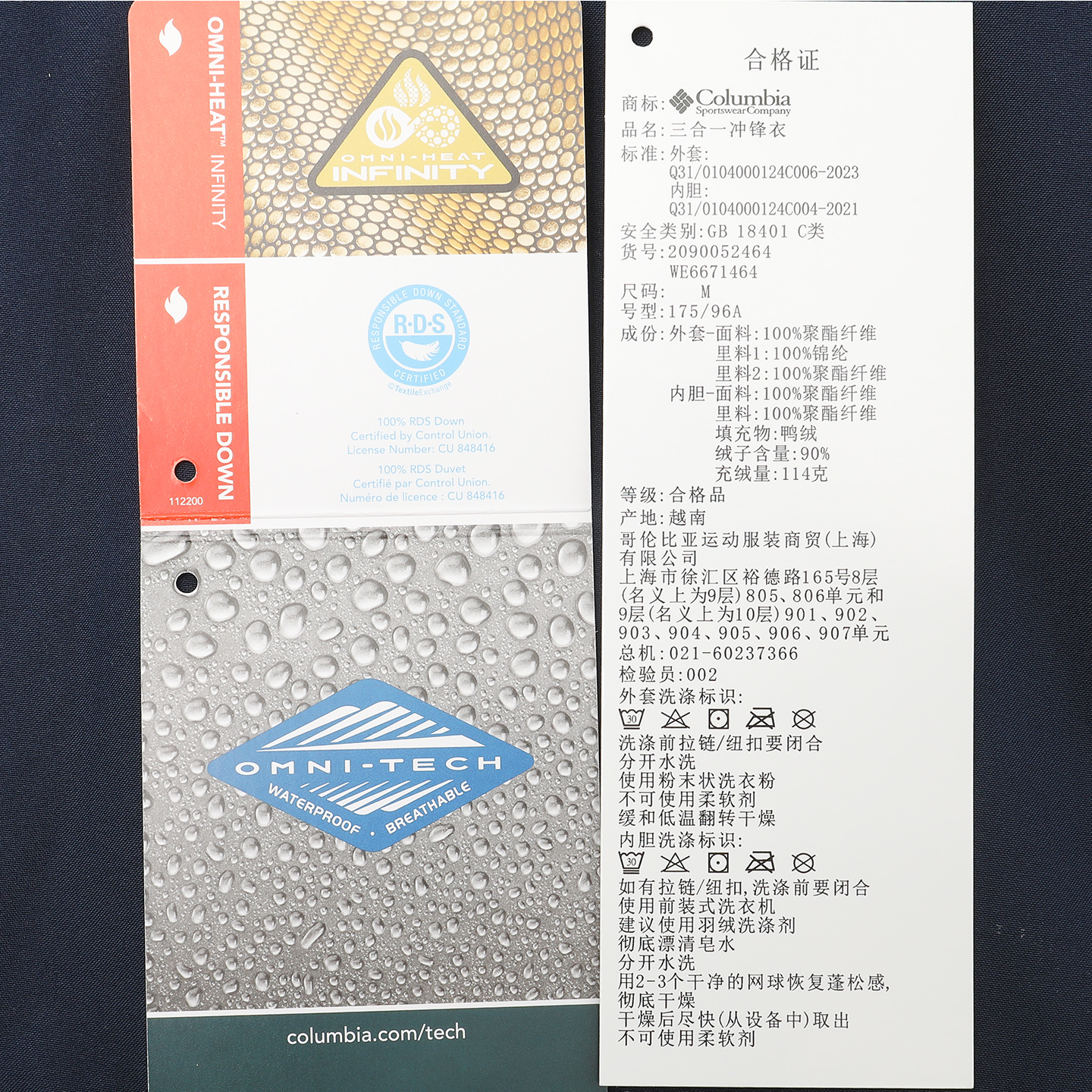 哥伦比亚金点热能三合一冲锋衣