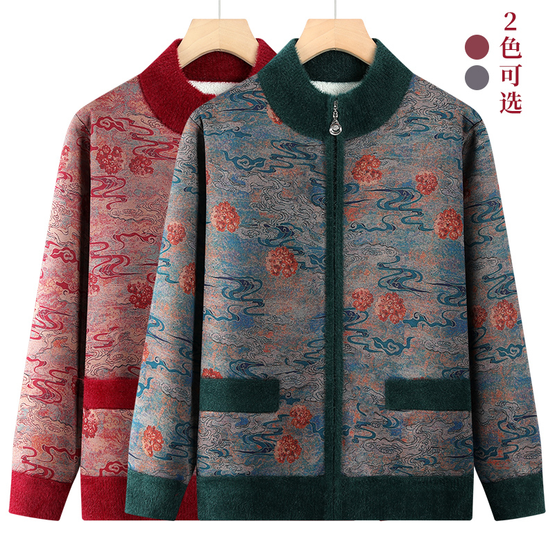 中老年人秋装女奶奶保暖外套妈妈开衫老太太秋冬加绒加厚针织上衣