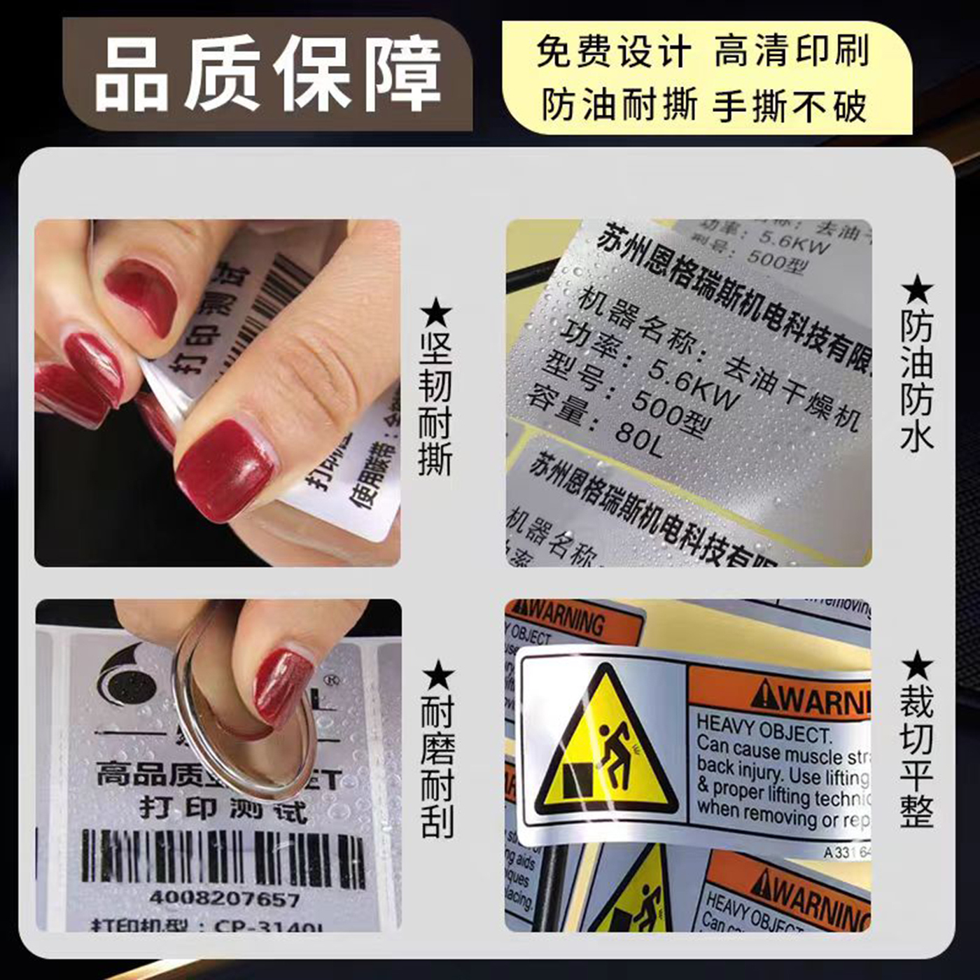 亚银不干胶标签定做拉丝银金哑银龙贴纸定制pvc防水防油铭牌印刷