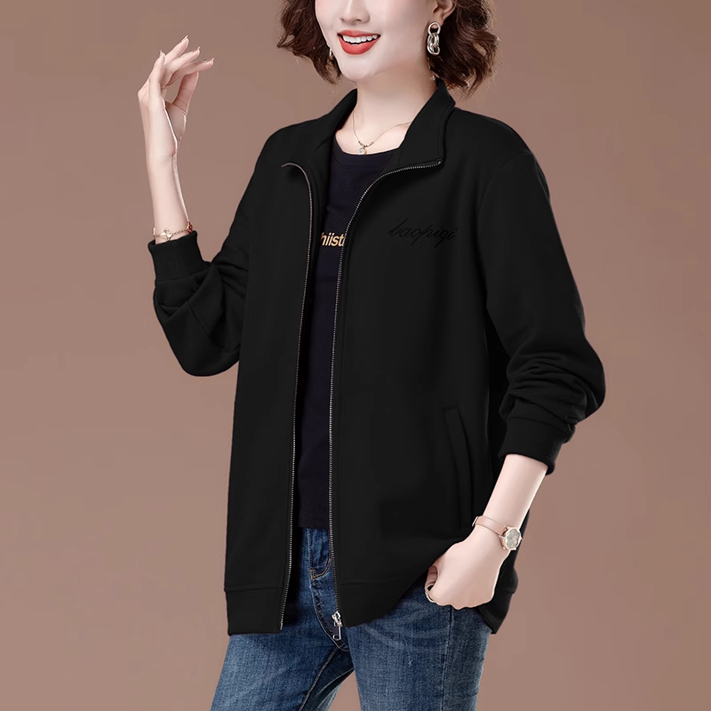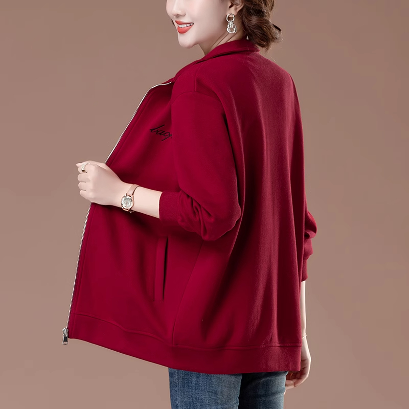 中年妈妈休闲卫衣女中长款遮臀外套拉链开衫新款宽松大码纯棉上衣