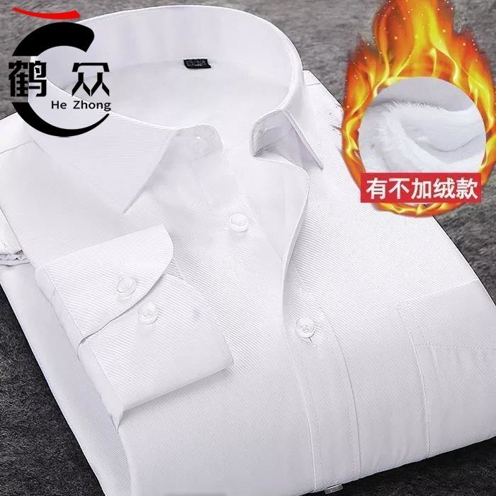 男士保暖衬衣加绒加厚秋冬季新款潮流商务白衬衣帅气加绒打底衫