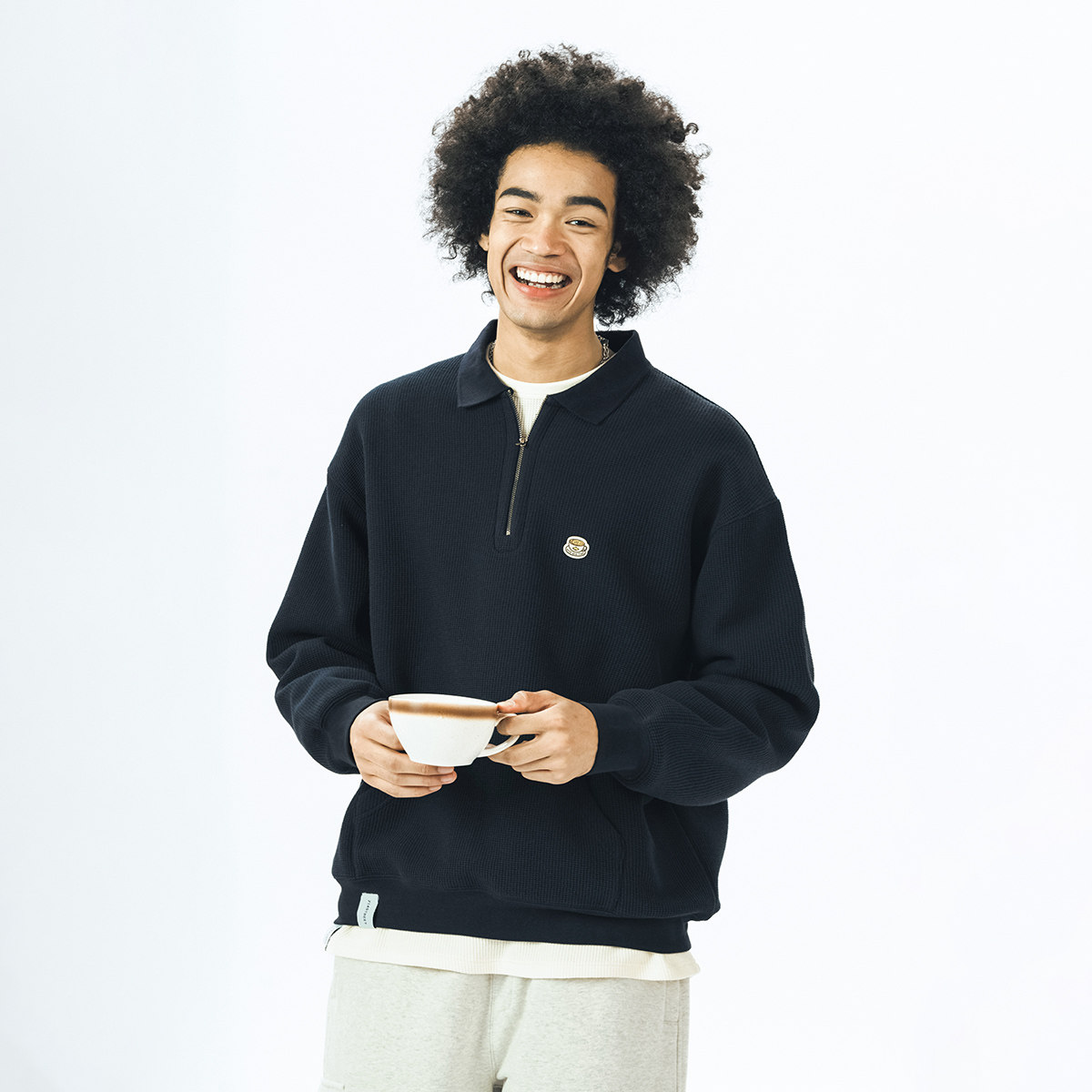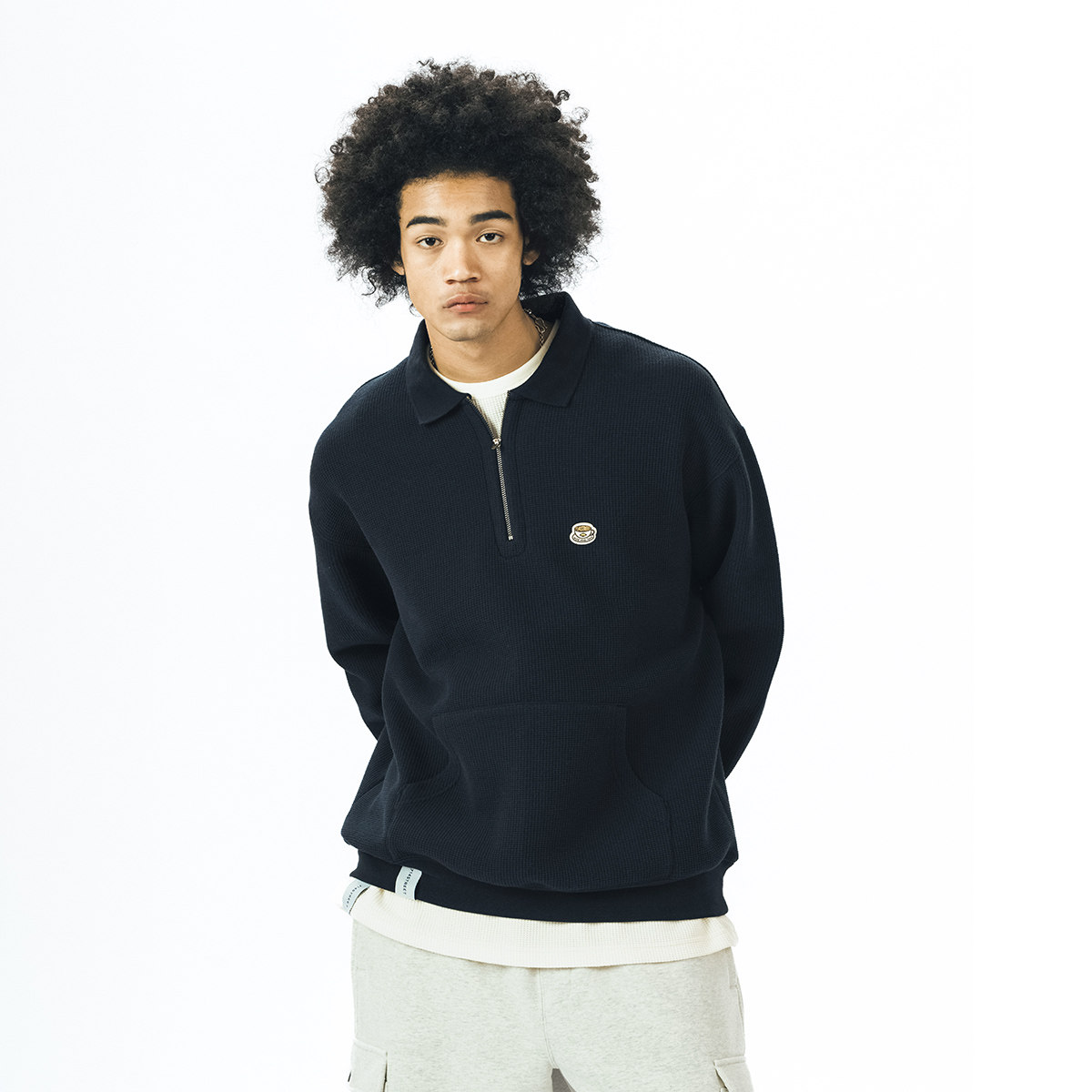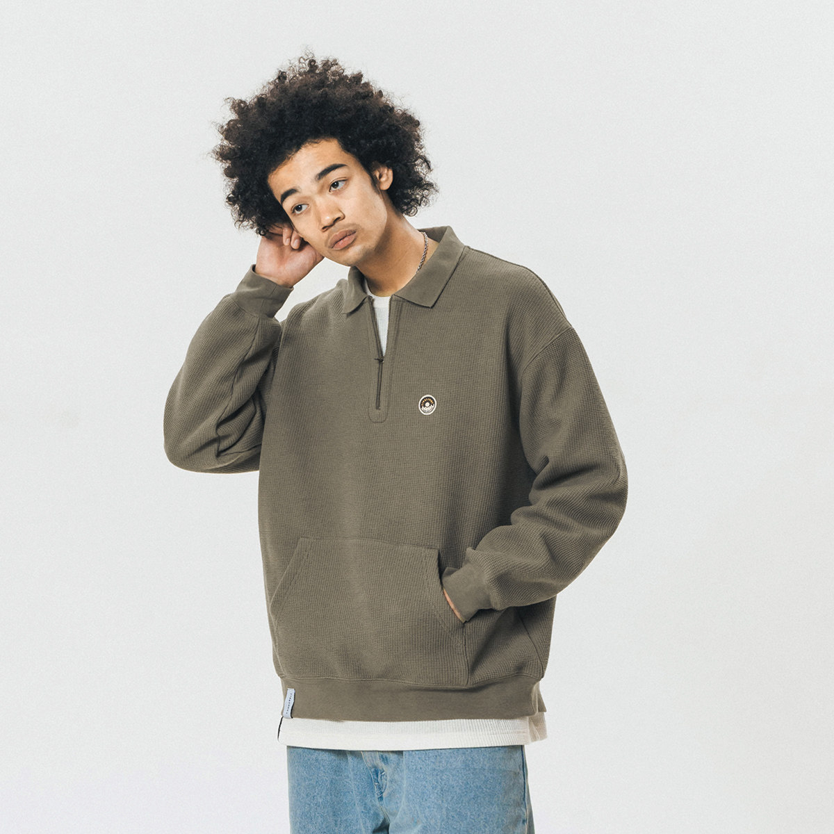 714street半拉链卫衣男潮牌日系复古华夫格秋装宽松上衣情侣外套