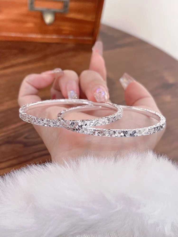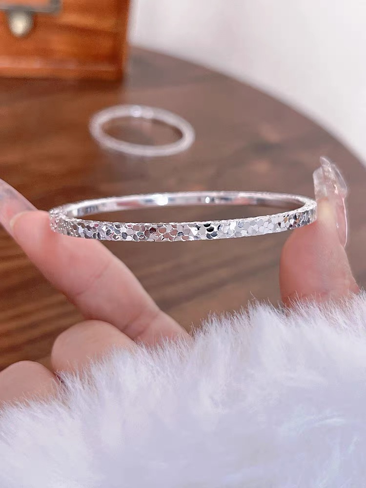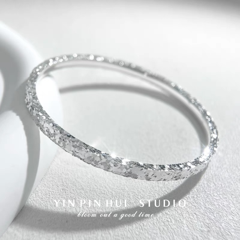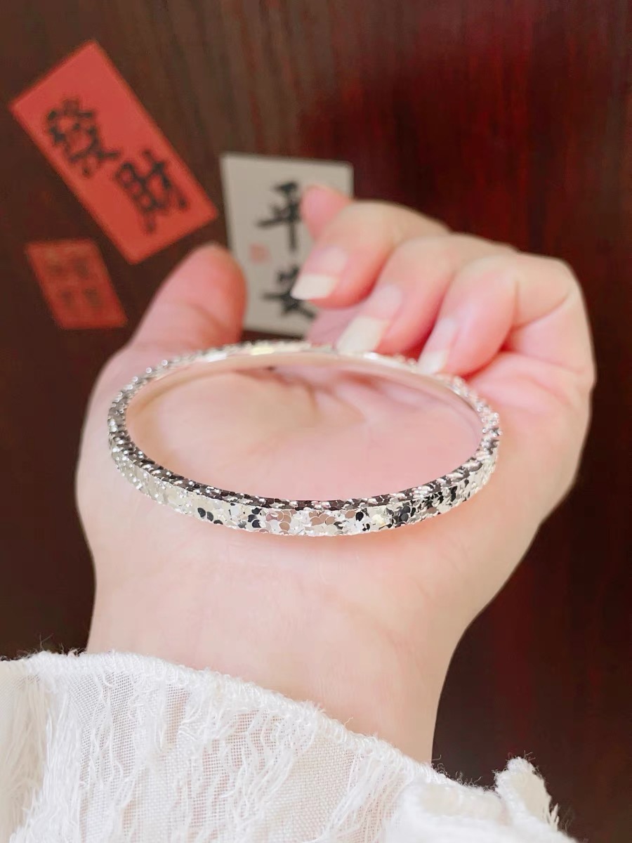 永记银铺足银999碎冰冰实心纯银闭口手镯女小众碎银子满天星礼物