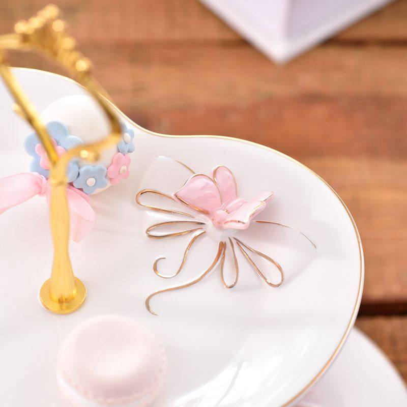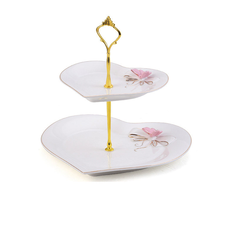 出口描金陶瓷托盘创意心形双层水果蛋糕甜点婚庆串盘下午茶点心盘