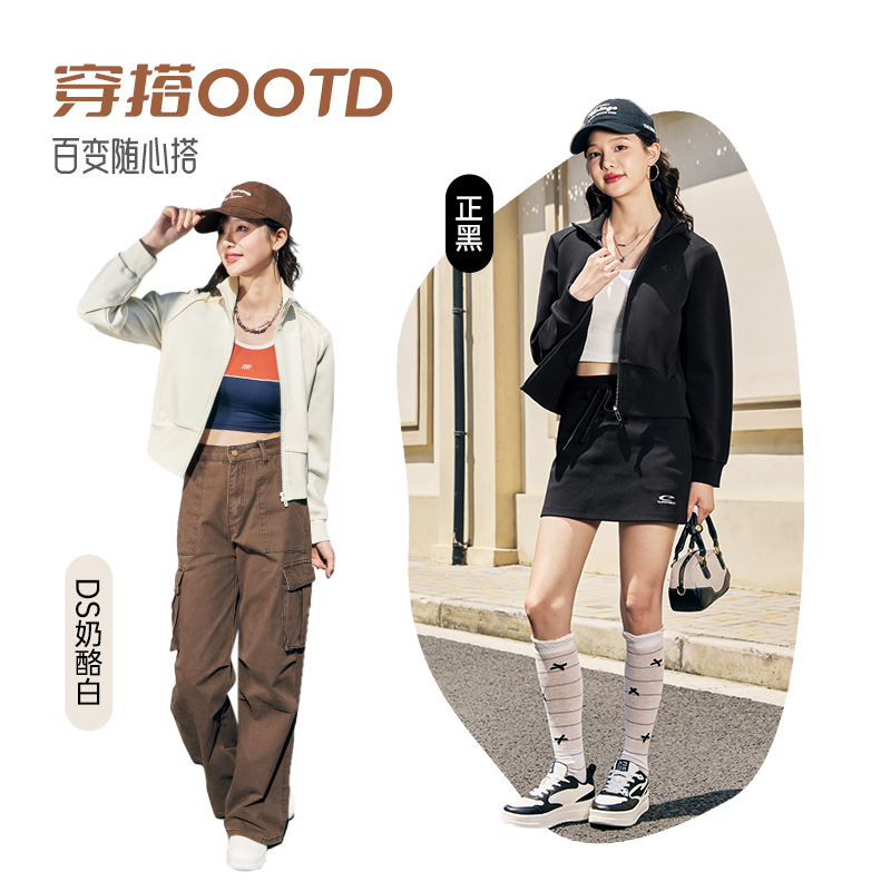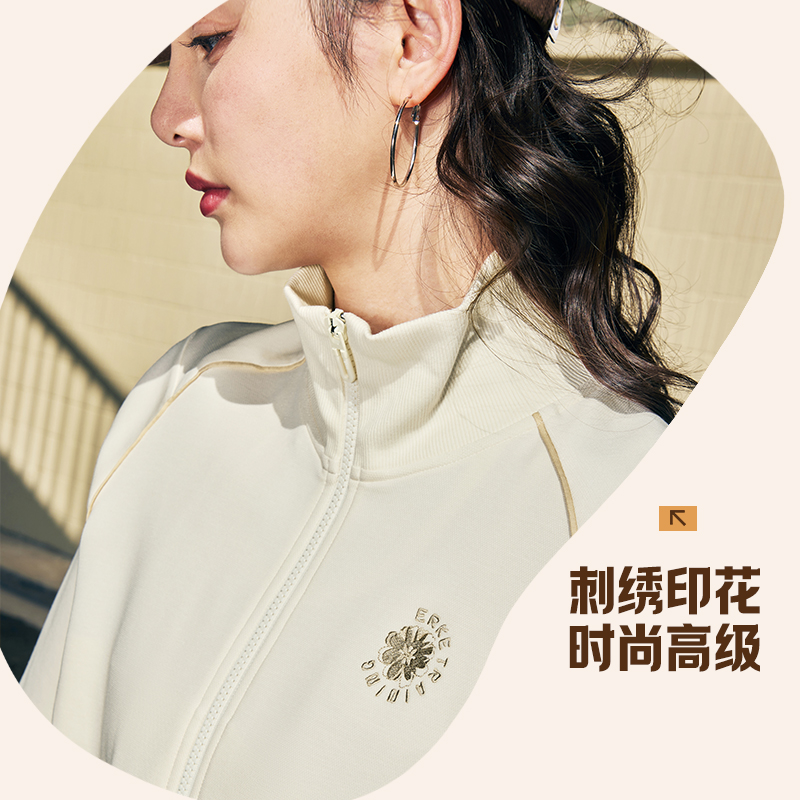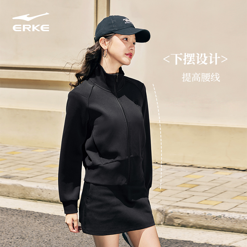 鸿星尔克女款外套2025冬季新款女士好看修身针织运动夹克上衣女装