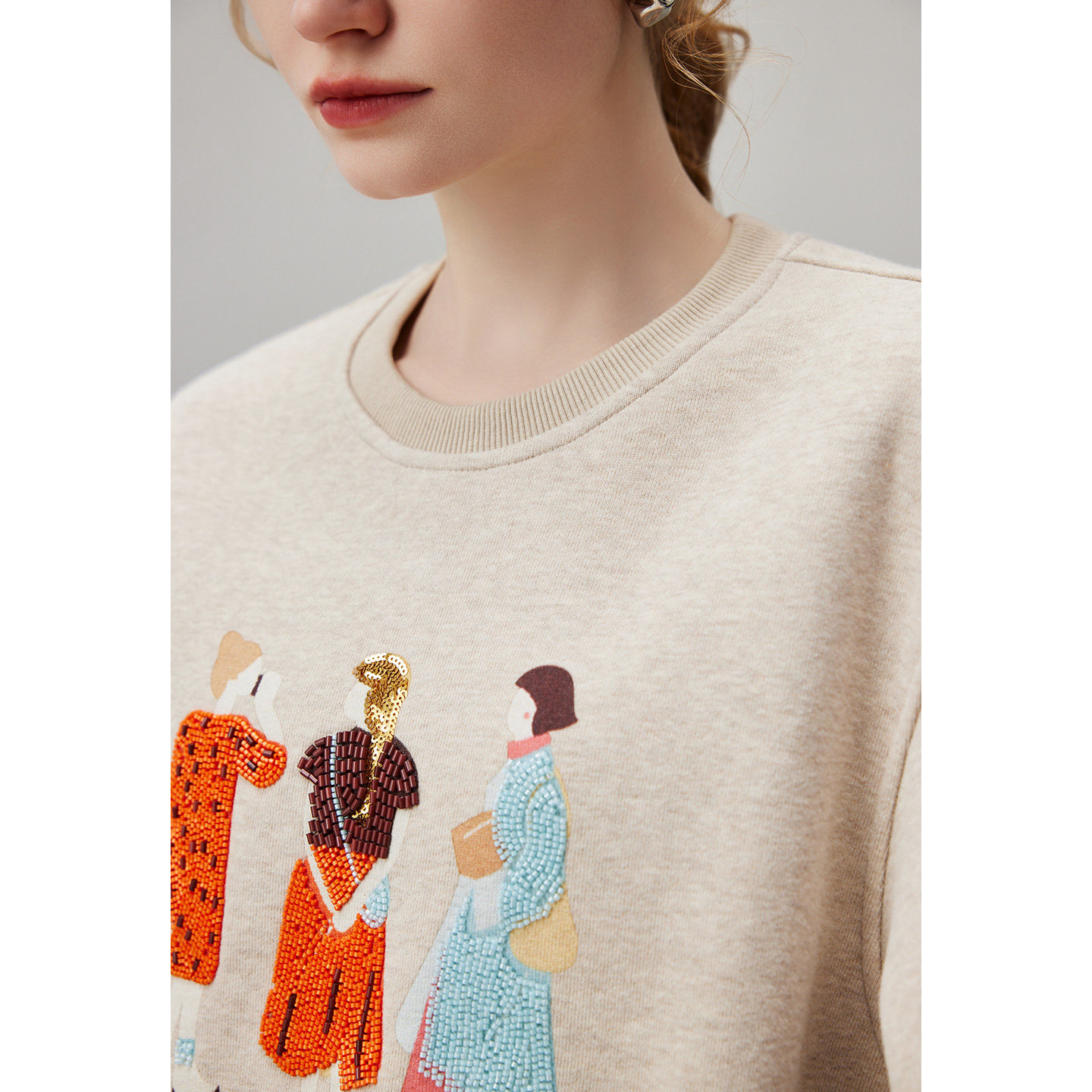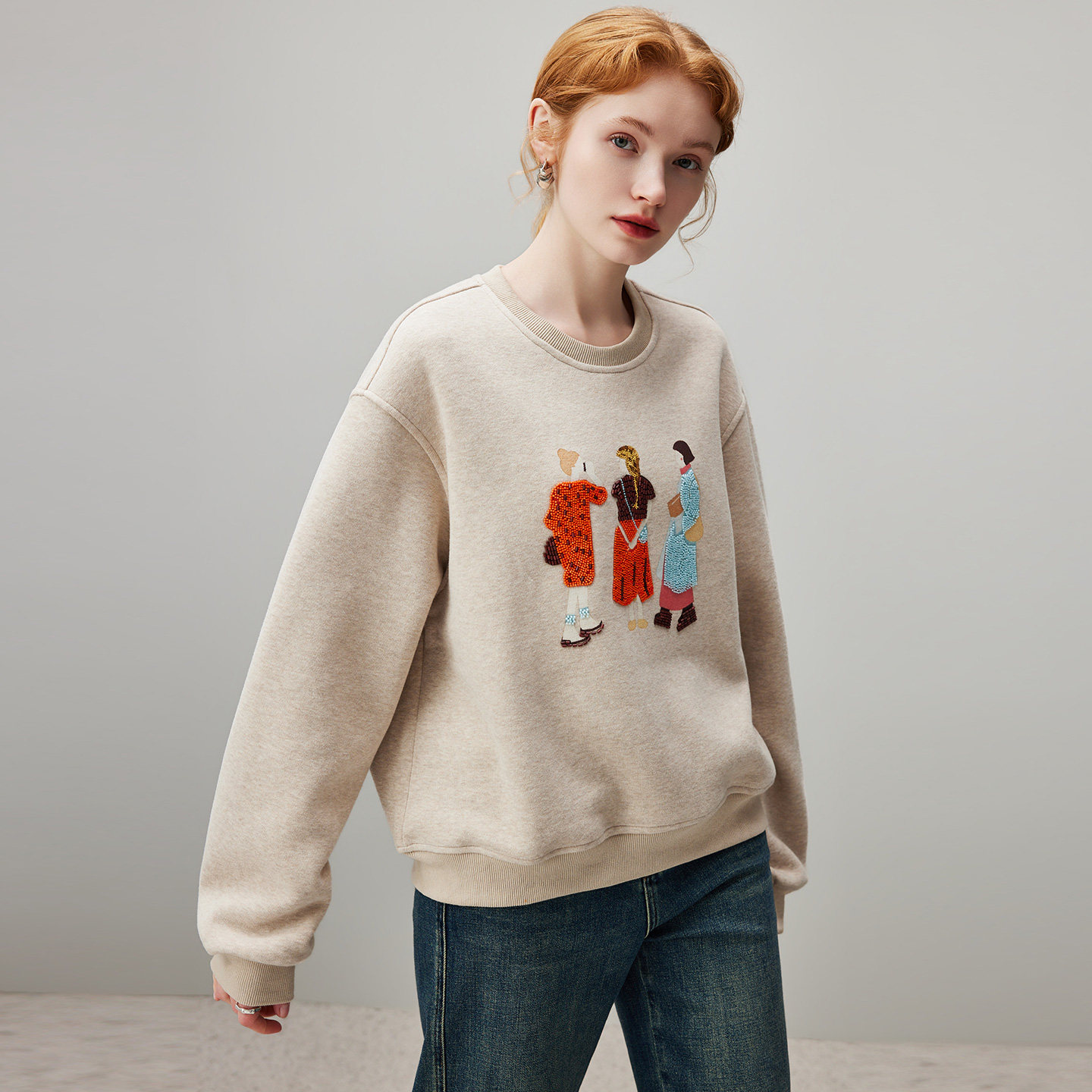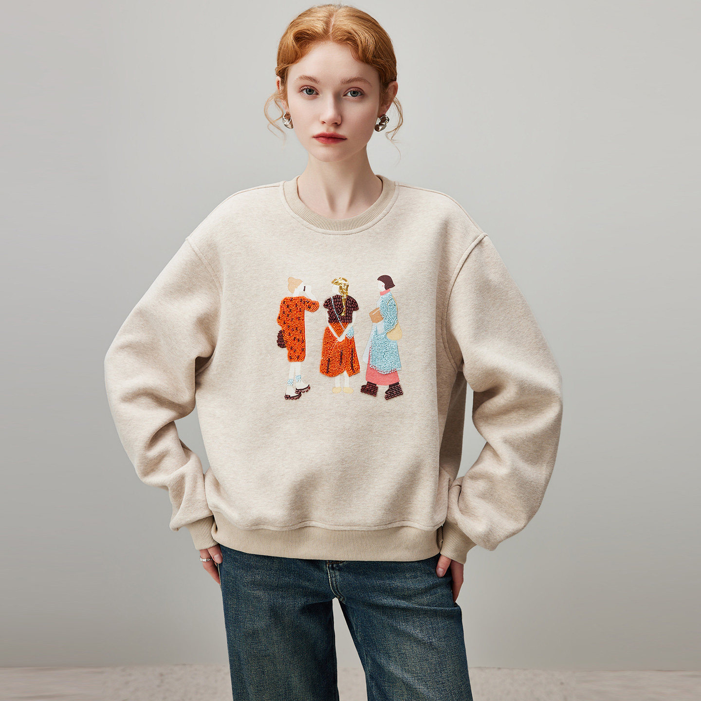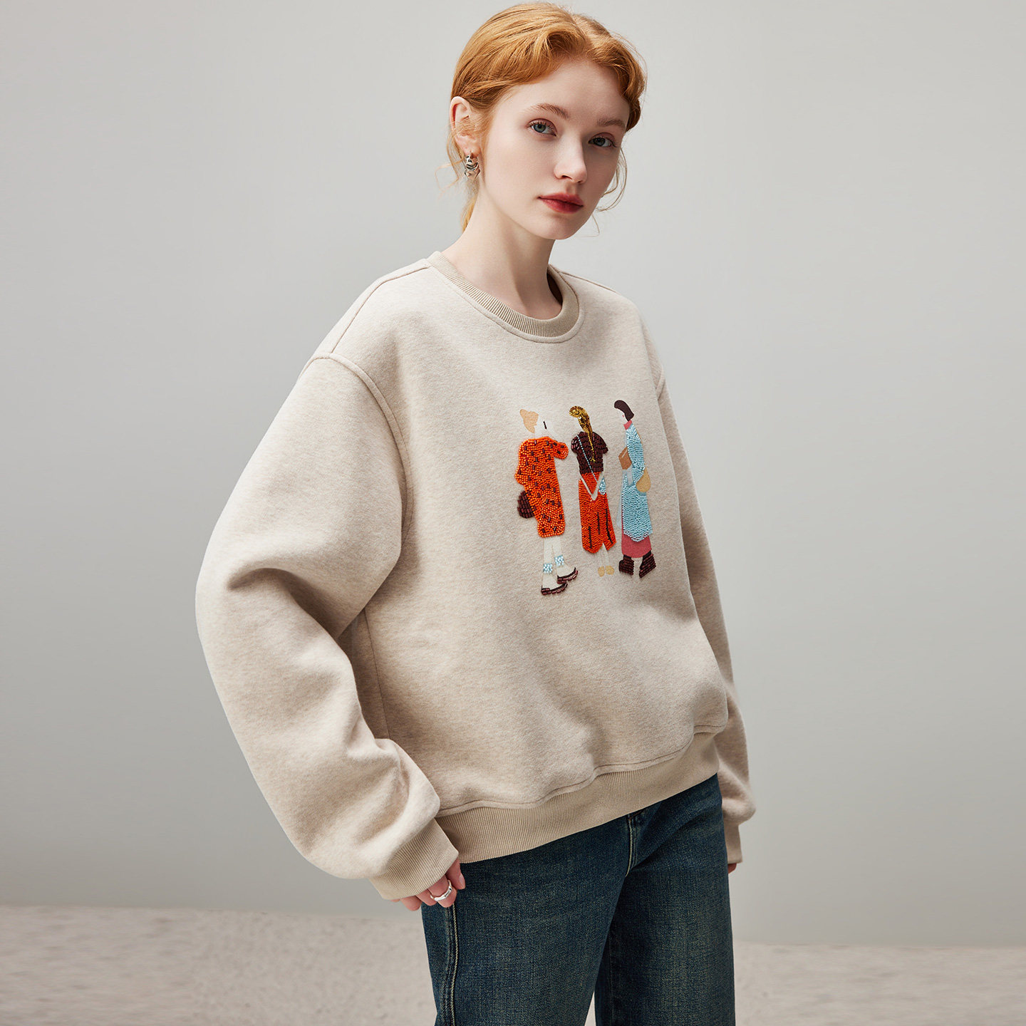 dfvc韩版印花圆领套头卫衣女2025年冬季新款加绒加厚短款宽松上衣