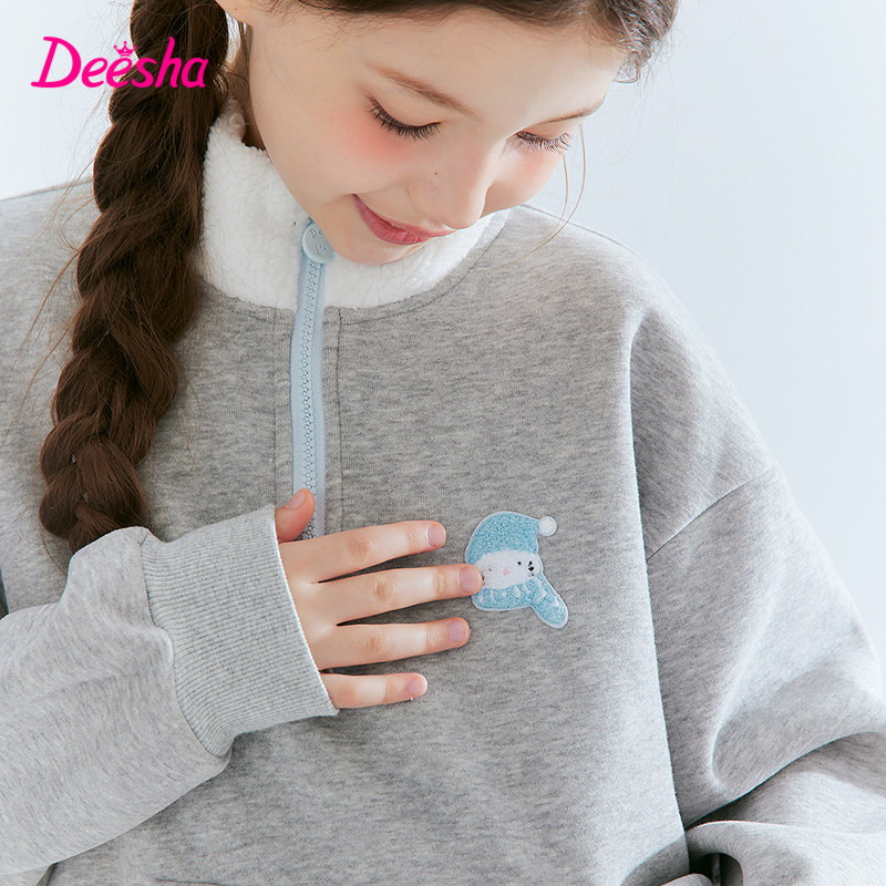 笛莎童装女童加绒卫衣冬季新款儿童女孩中大童立领韩版外套上衣