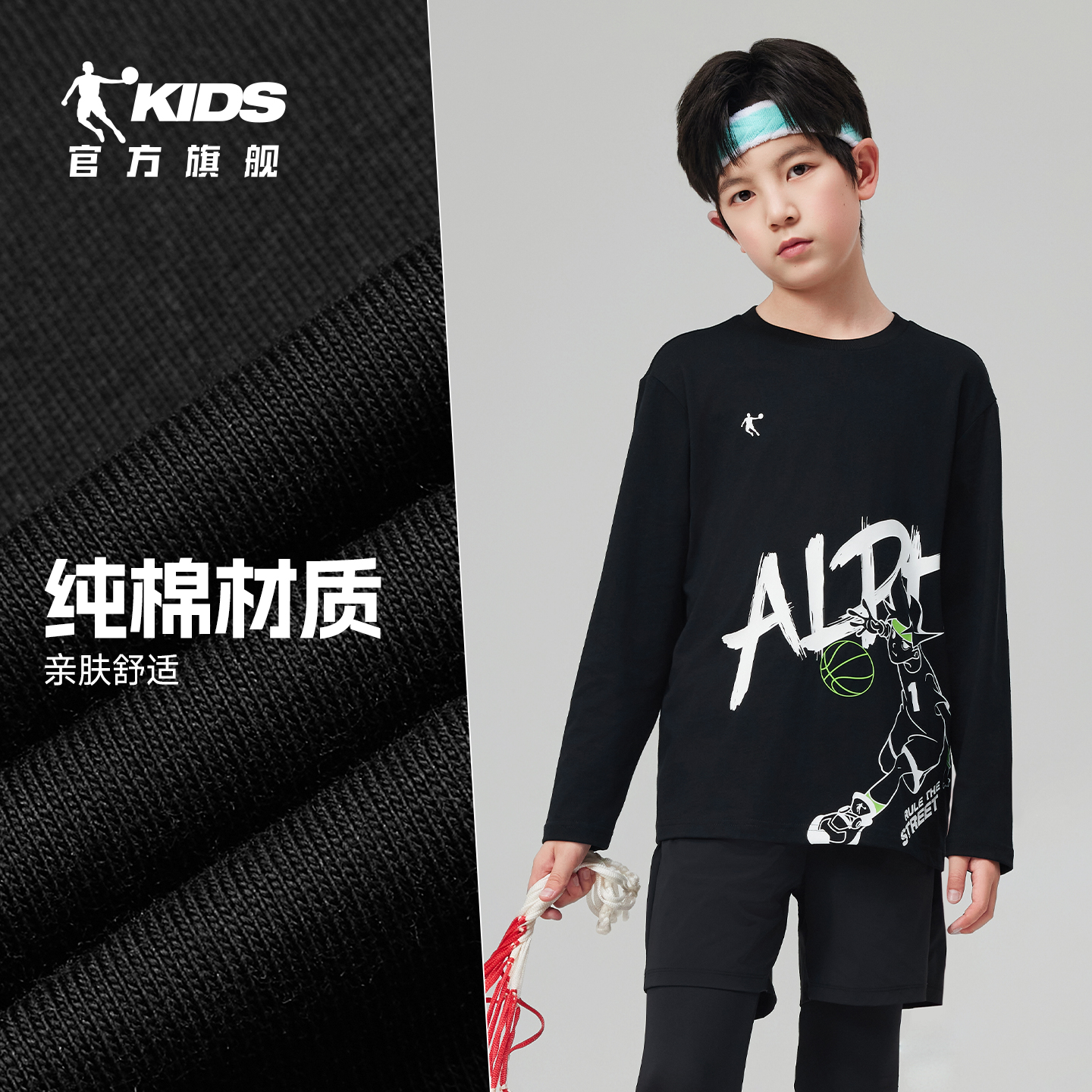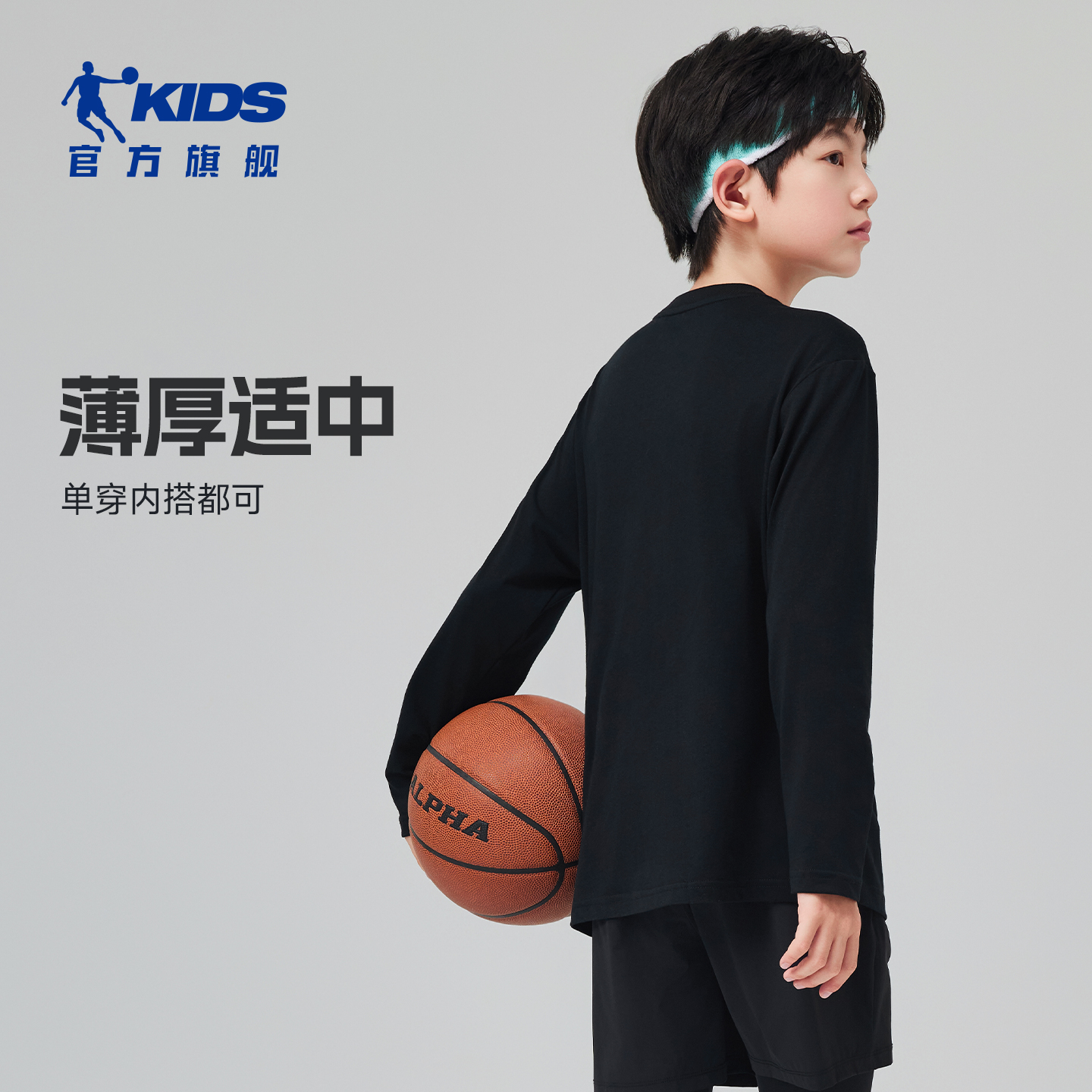 乔丹童装男童长袖t恤2025春秋新款大童纯棉内搭男孩运动上衣秋装