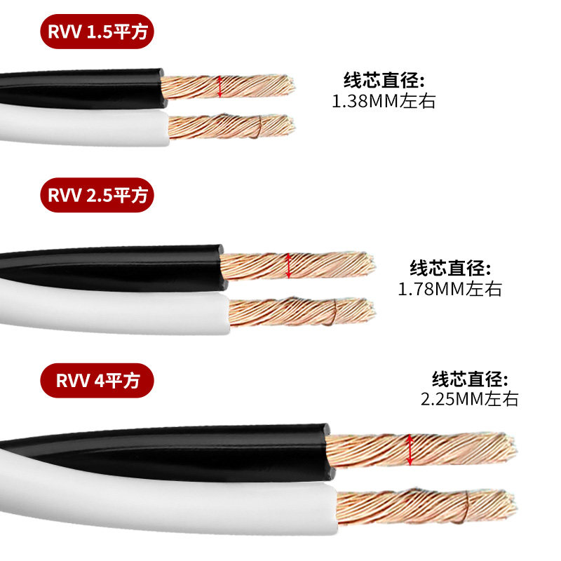 二芯双绞线监控照明线1 1.5 2.5 4平方家用灯头充电线软线电源线
