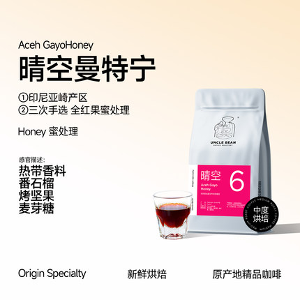 豆叔晴空印尼曼特宁蜜处理阿拉比卡咖啡豆单品咖啡手冲美式黑咖啡