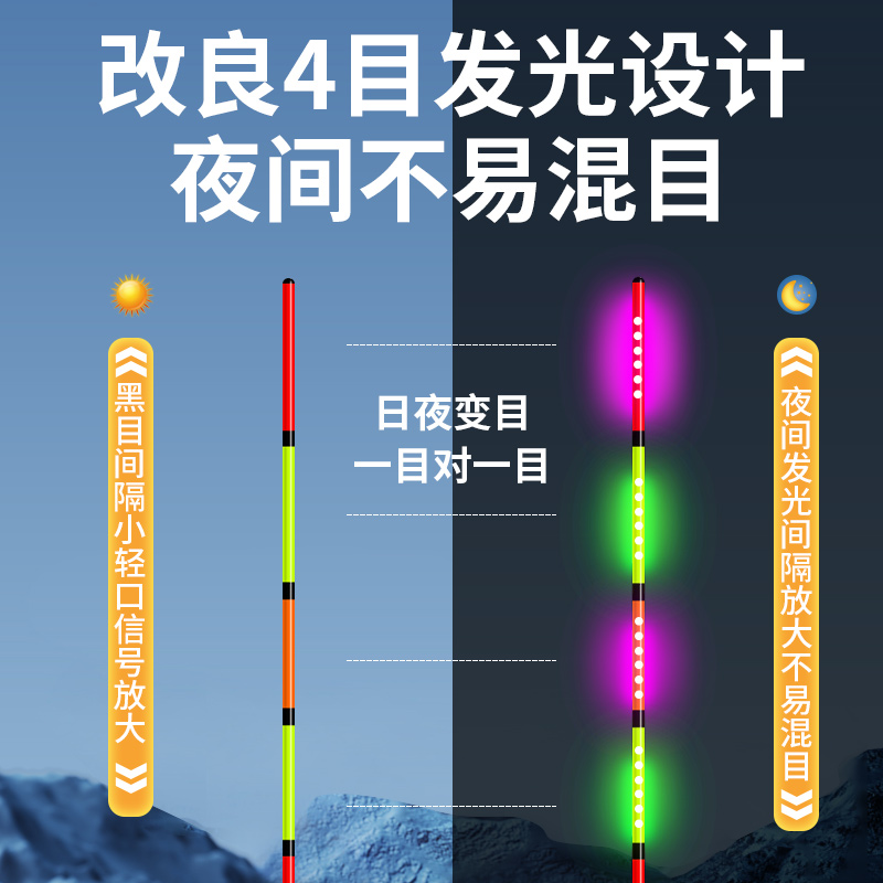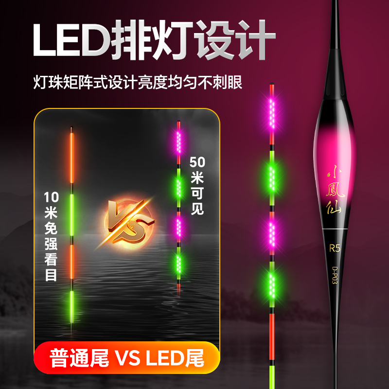 小凤仙超醒目LED硬尾夜光漂高灵敏日夜两用电子漂鲫鱼漂细尾浮漂