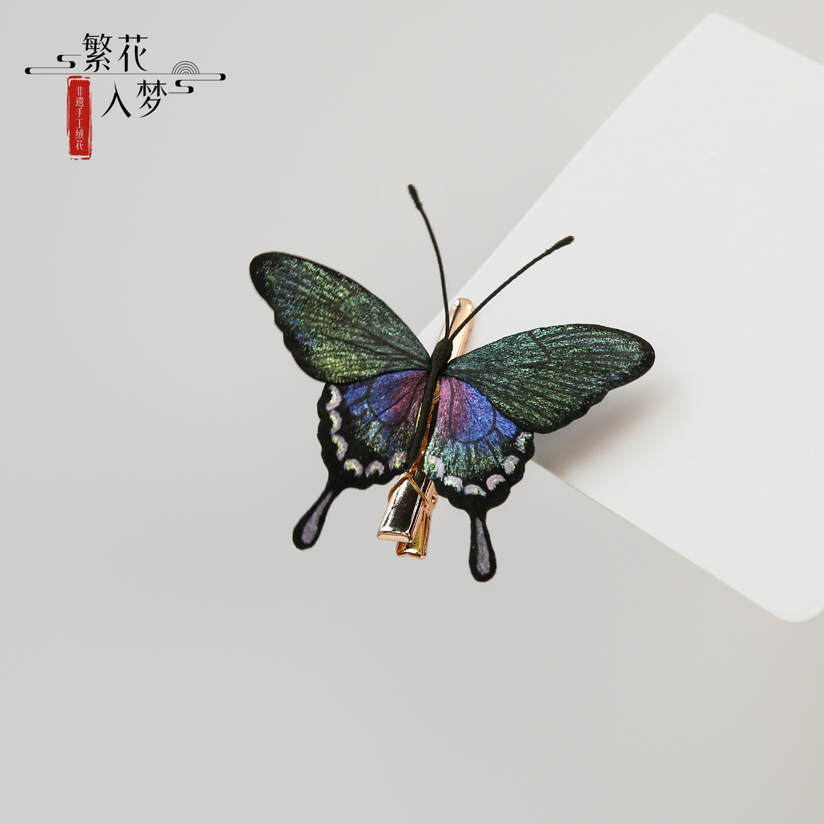 繁花入梦丨原创设计非遗绒花颤动蝴蝶发夹汉服旗袍古风发饰女头饰